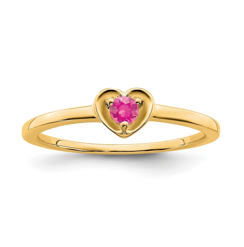 14K Yellow Gold Pink Tourmaline Heart Ring, Size 6