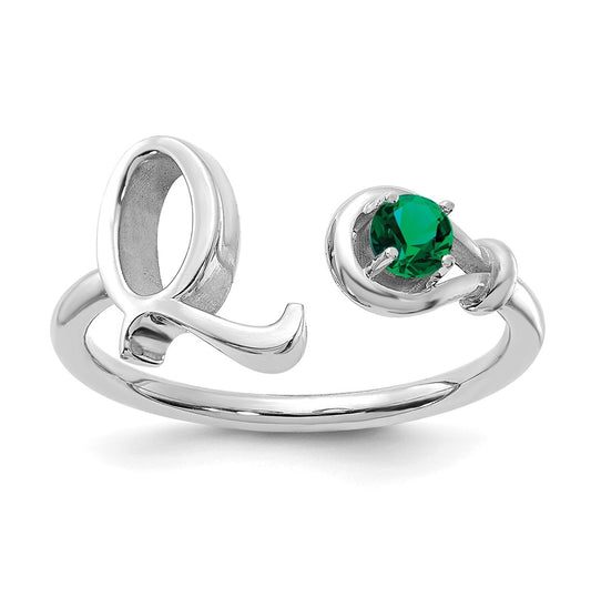Sterling Silver Rhodium plated Peridot and Dia Ring, Size 8