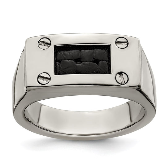 Titanium Ridged Edge Greek Key Design 6mm Satin Polished Band, Size 7.5