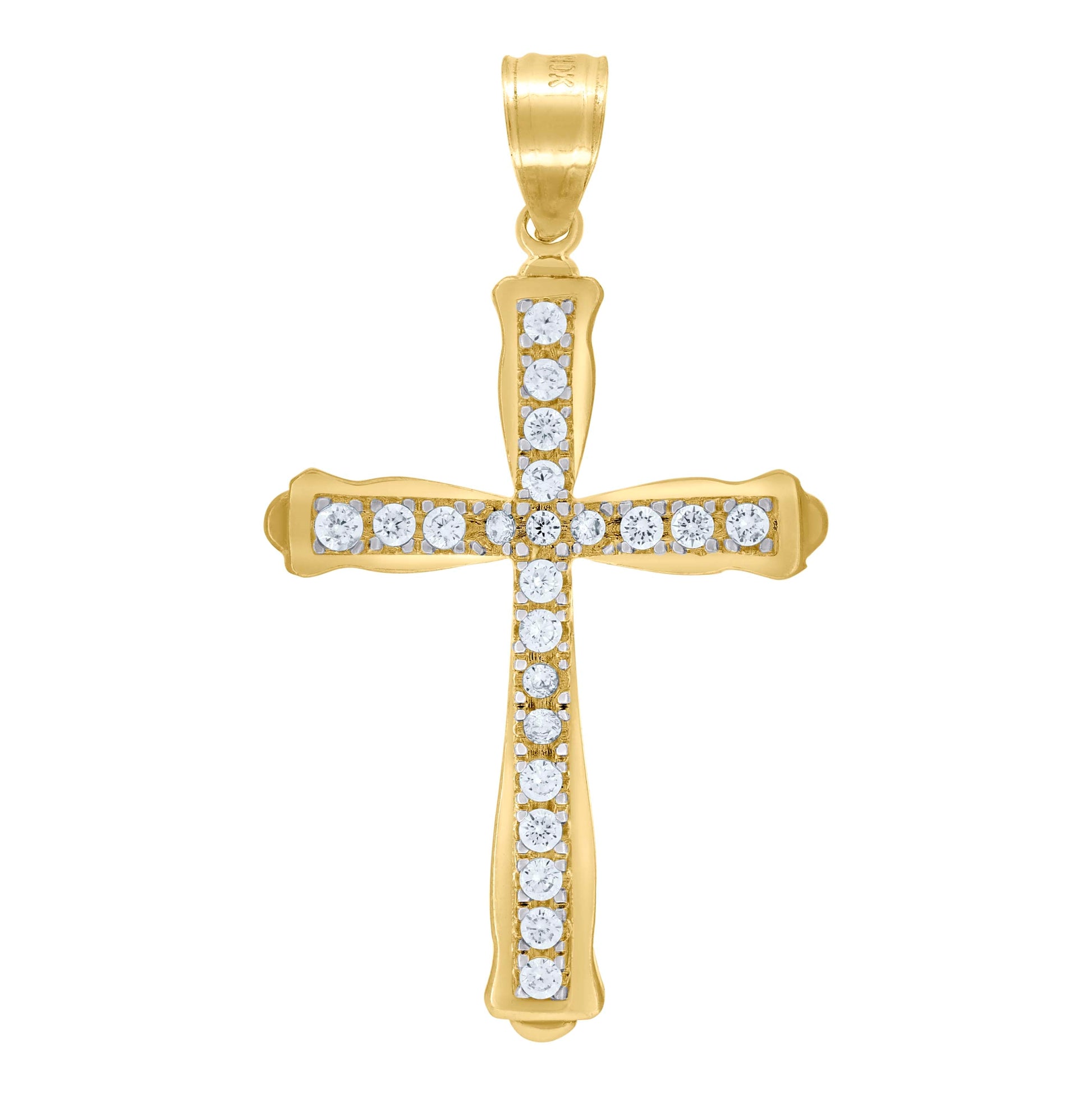 10K Gold Two-Tone Cubic-Zirconia Unisex Cross Religious Charm Pendant