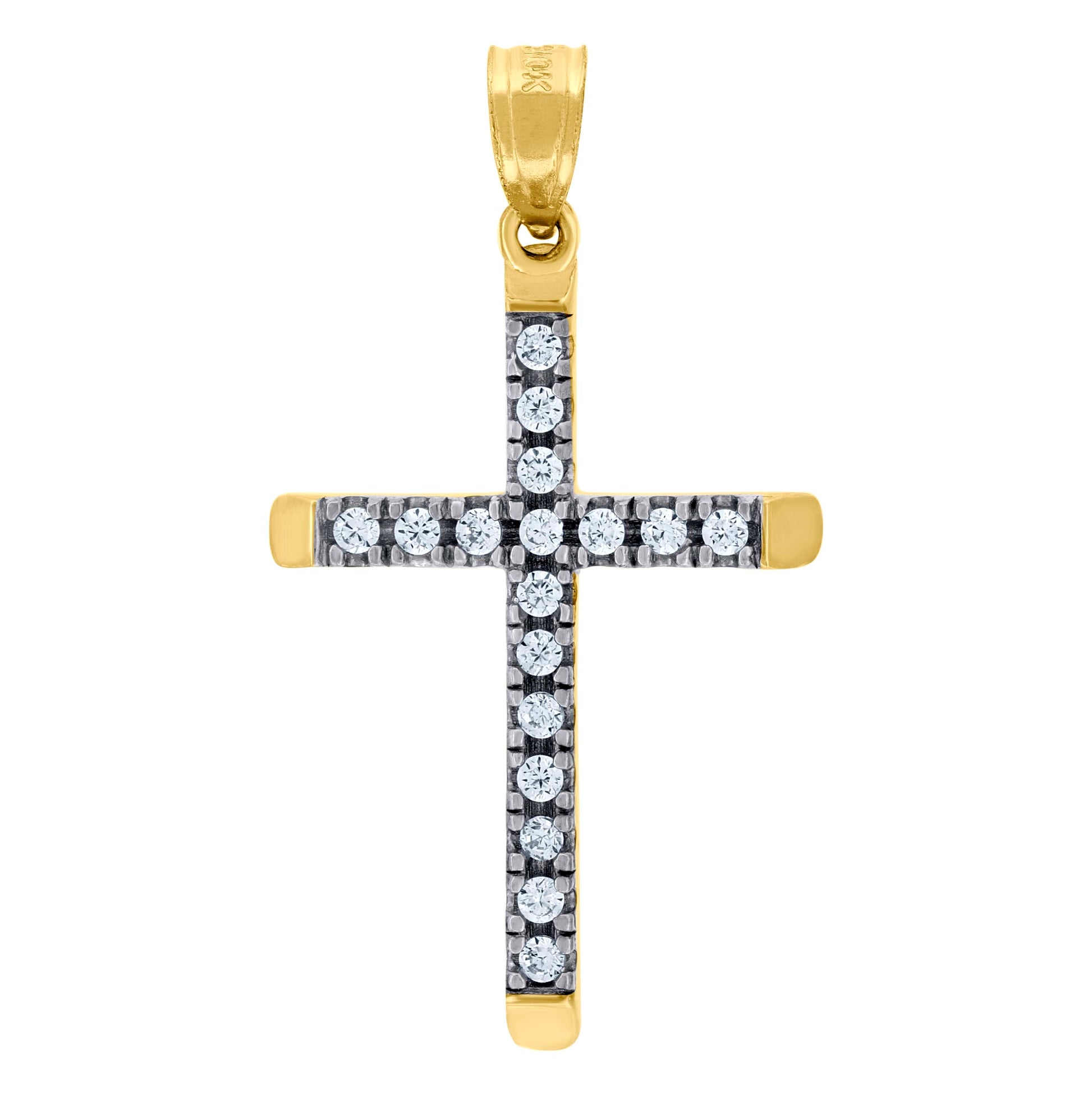 10K Gold Two-Tone Cubic-Zirconia Unisex Cross Religious Charm Pendant