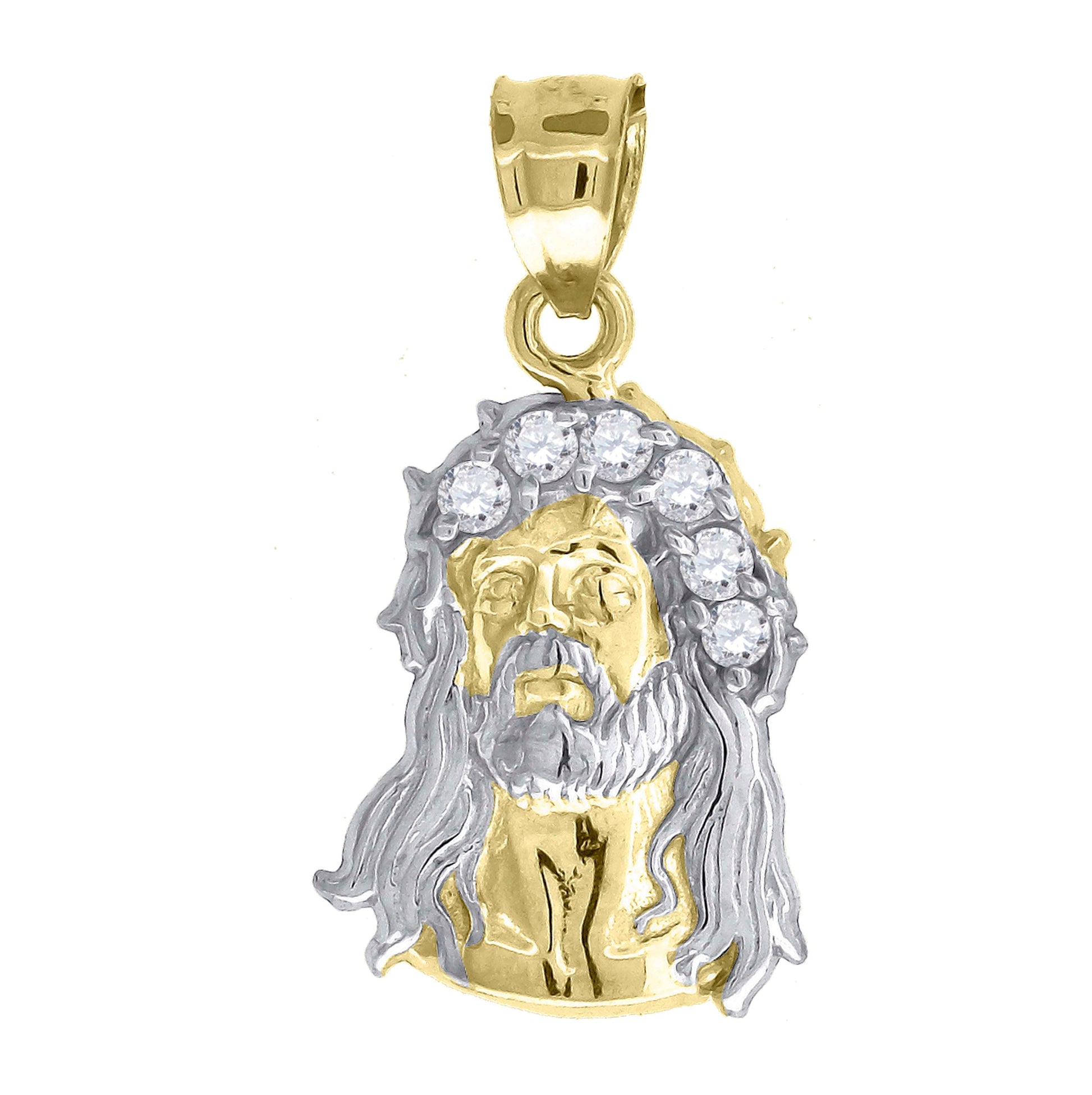 10K Gold Two-Tone Cubic-Zirconia Unisex Jesus Religious Charm Pendant