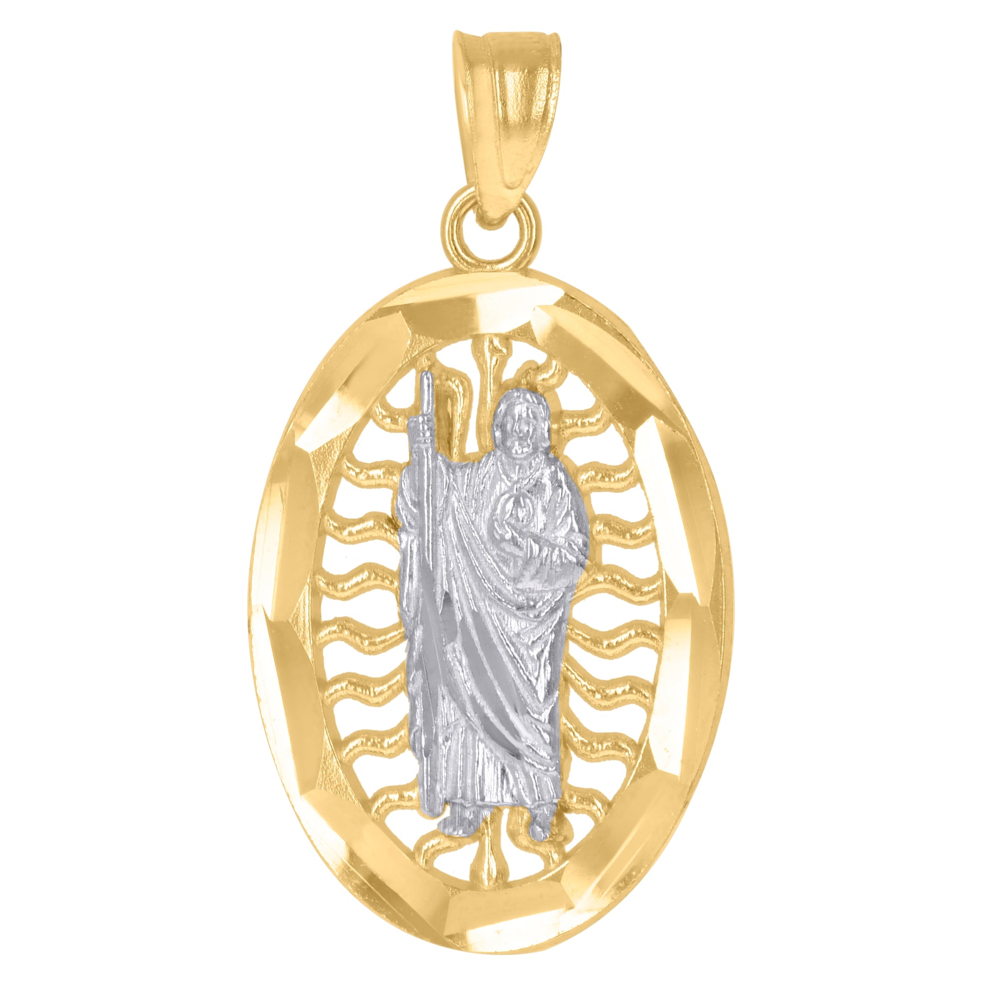 10K Gold Two-Tone Diamond-Cut Unisex Saint Jude Religious Charm Pendant
