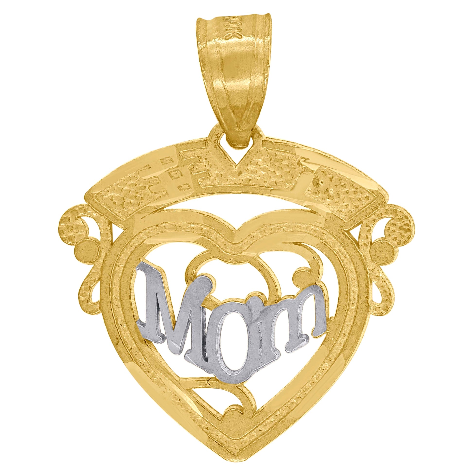 10K Gold Two-Tone Diamond-Cut Womens Heart Mom Charm Pendant