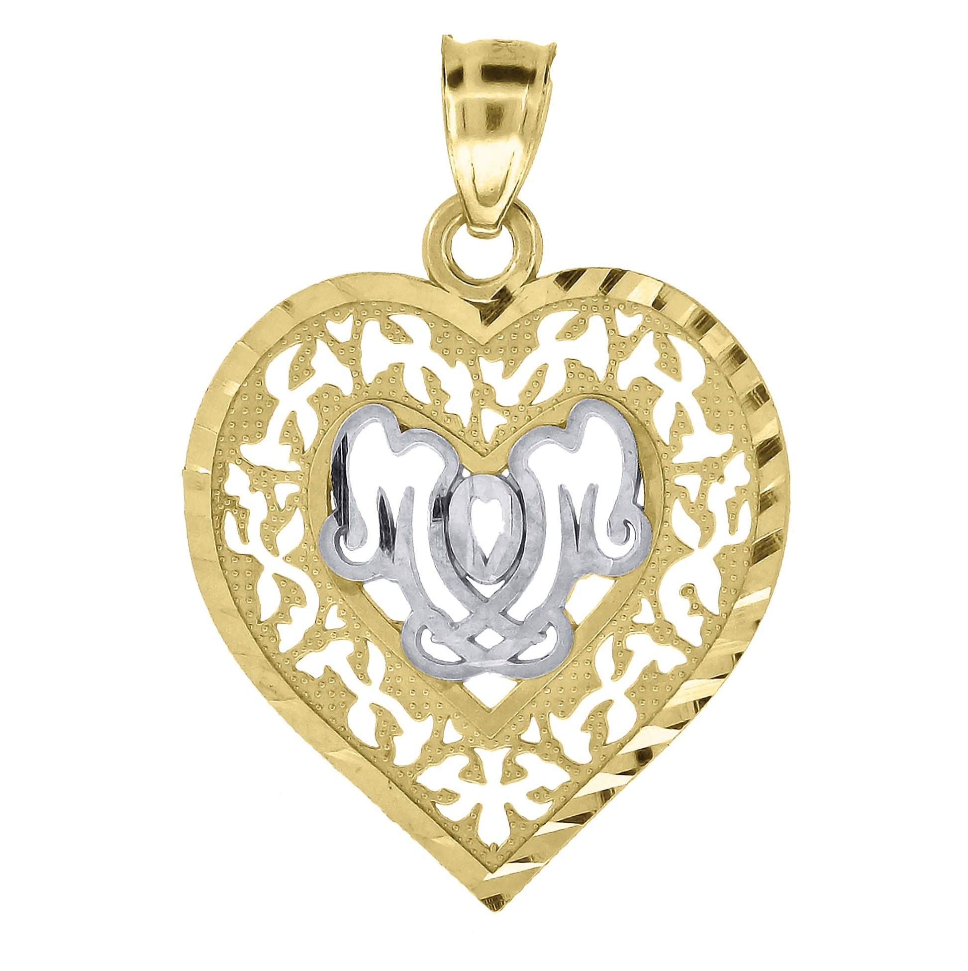 10K Gold Two-Tone Diamond-Cut Womens Mom Heart Charm Pendant