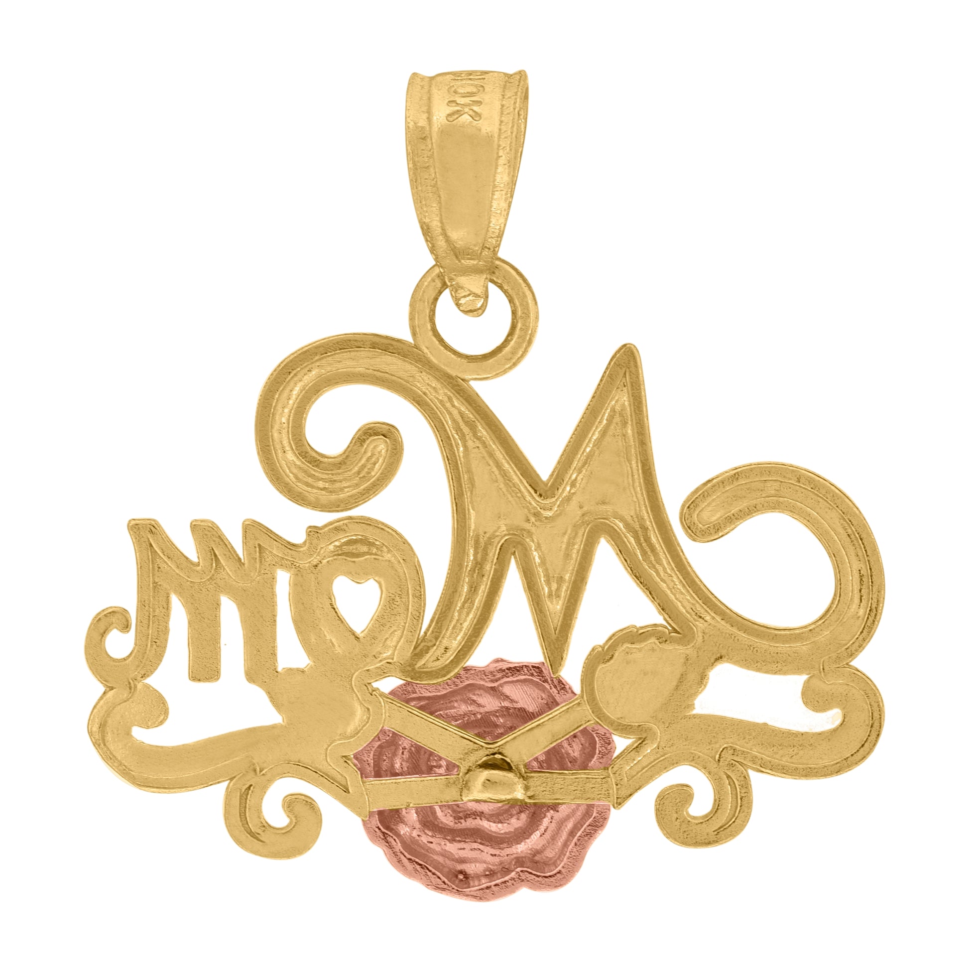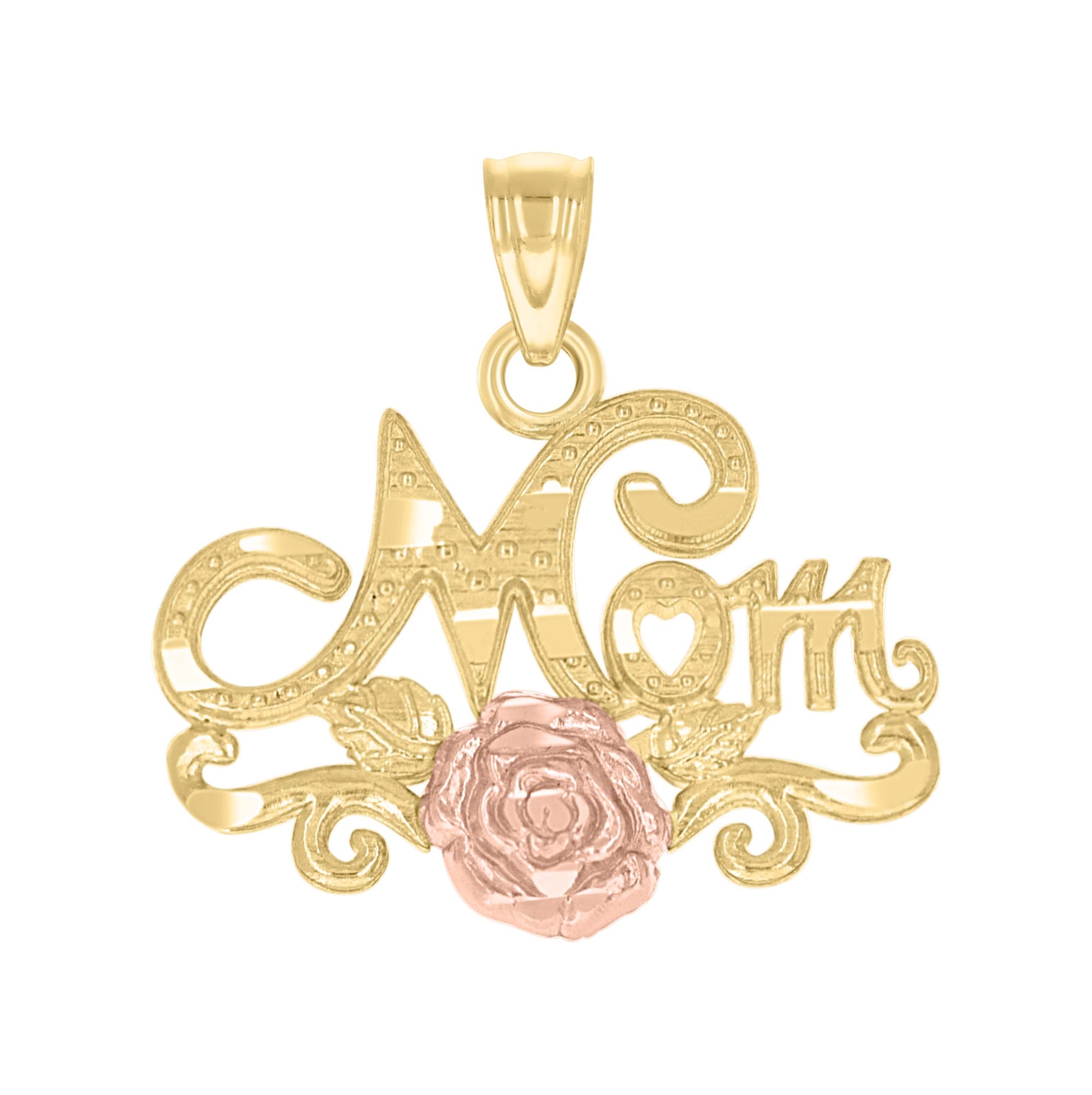 10K Gold Two-Tone Diamond-Cut Womens Mom Rose Letters & Words Charm Pendant