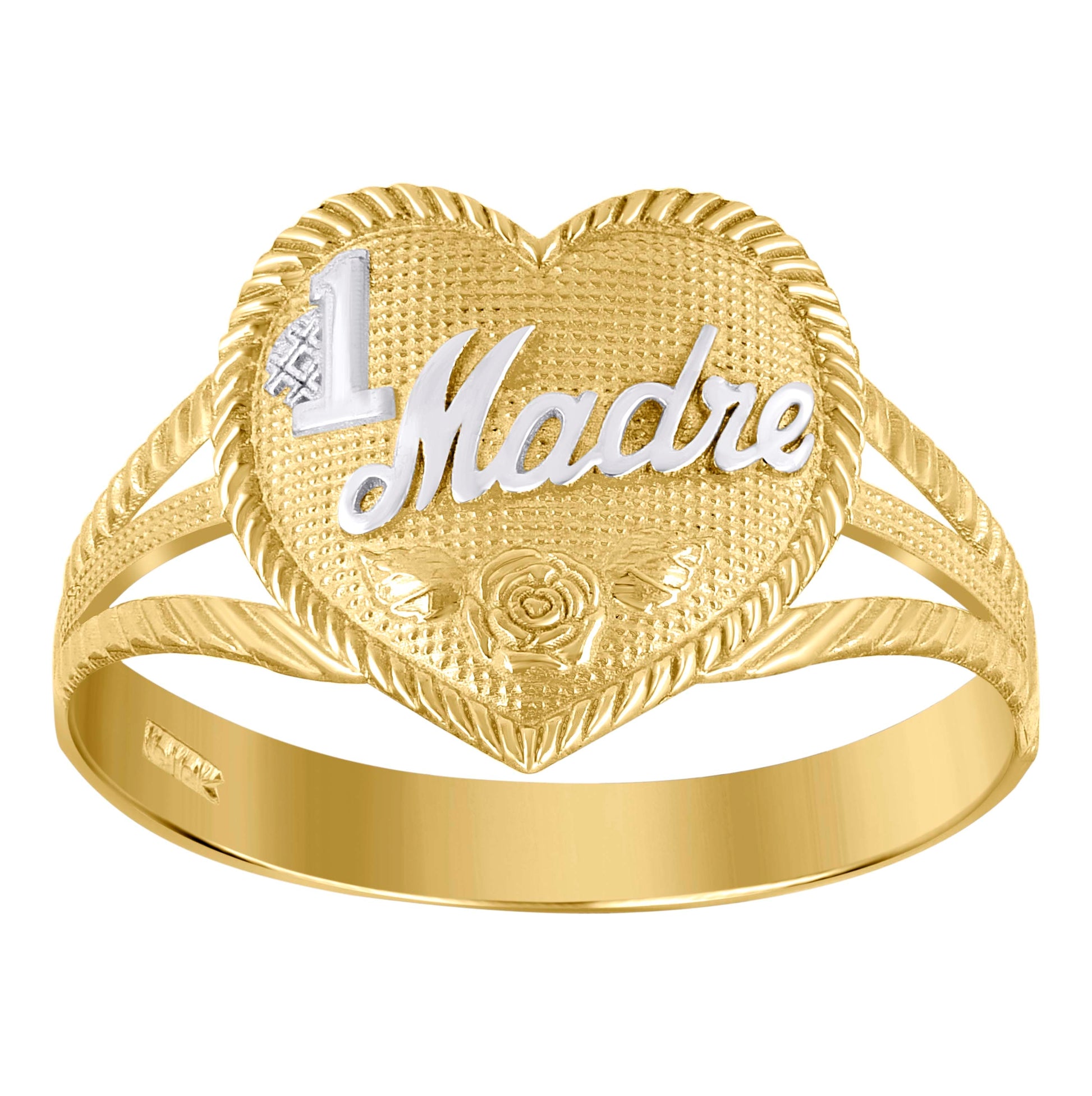 10K Gold Womens Two-Tone #1 Mom Heart Band Ring