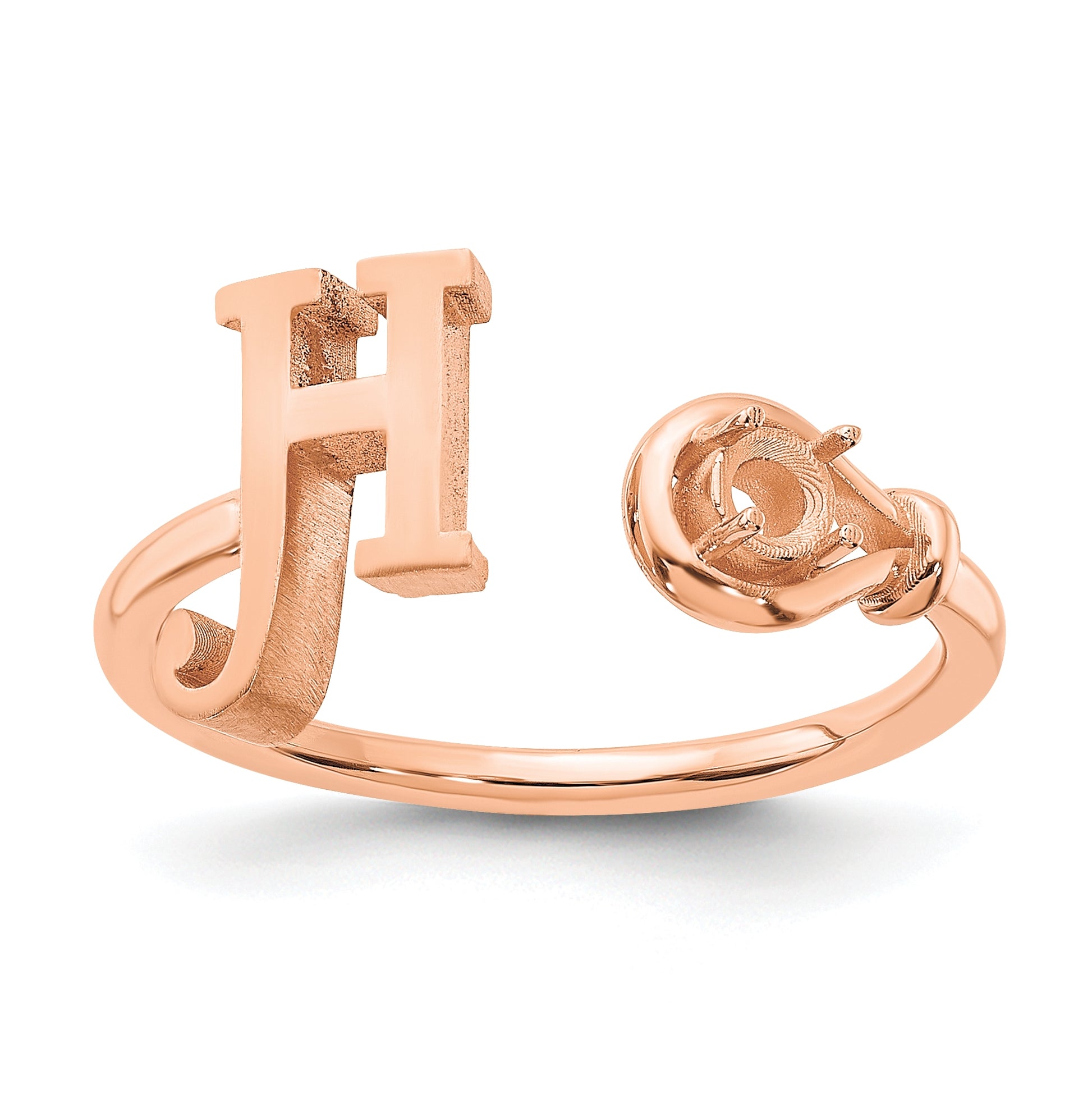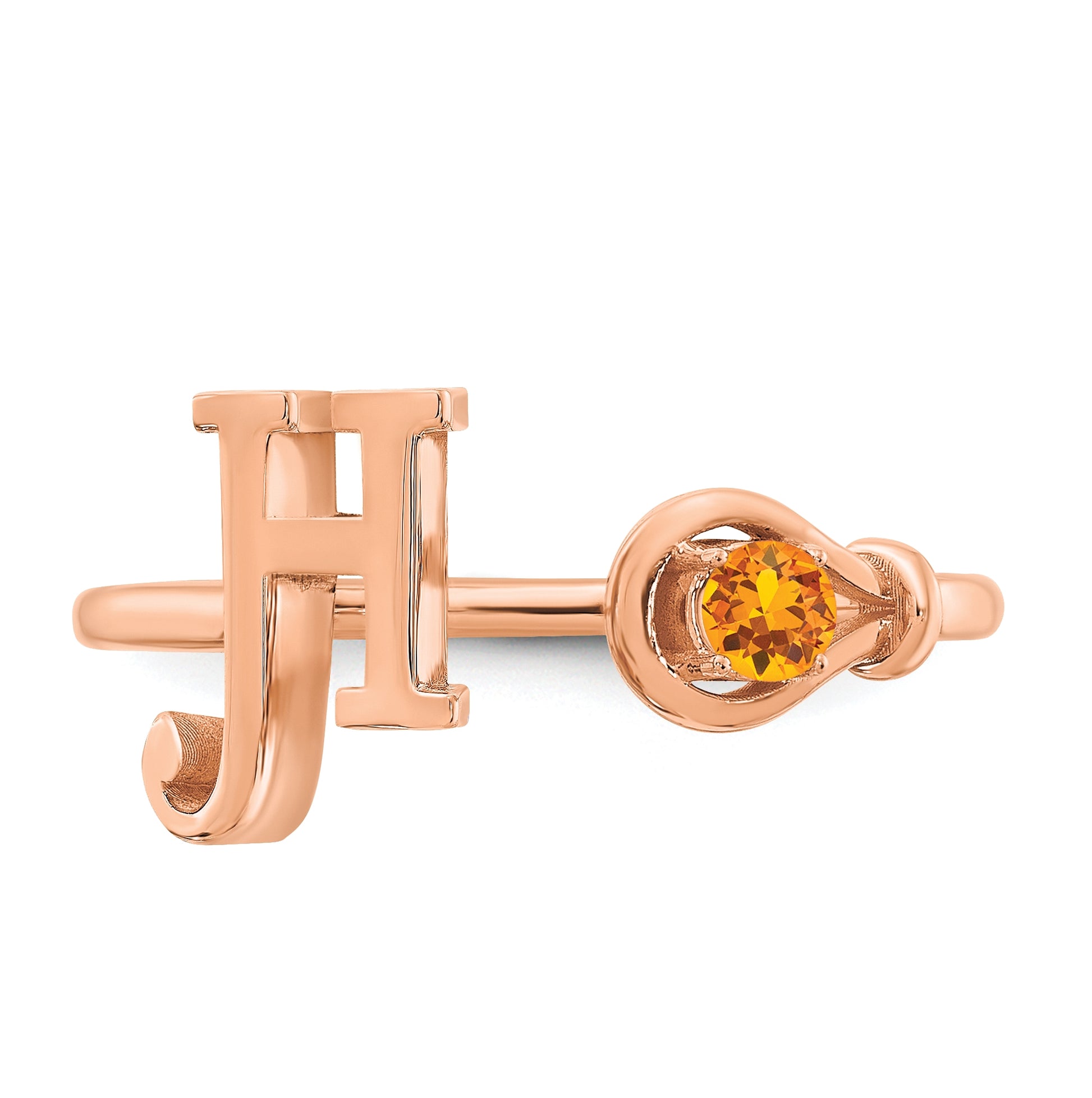 10K Rose Gold Letter H with Birthstone Ring