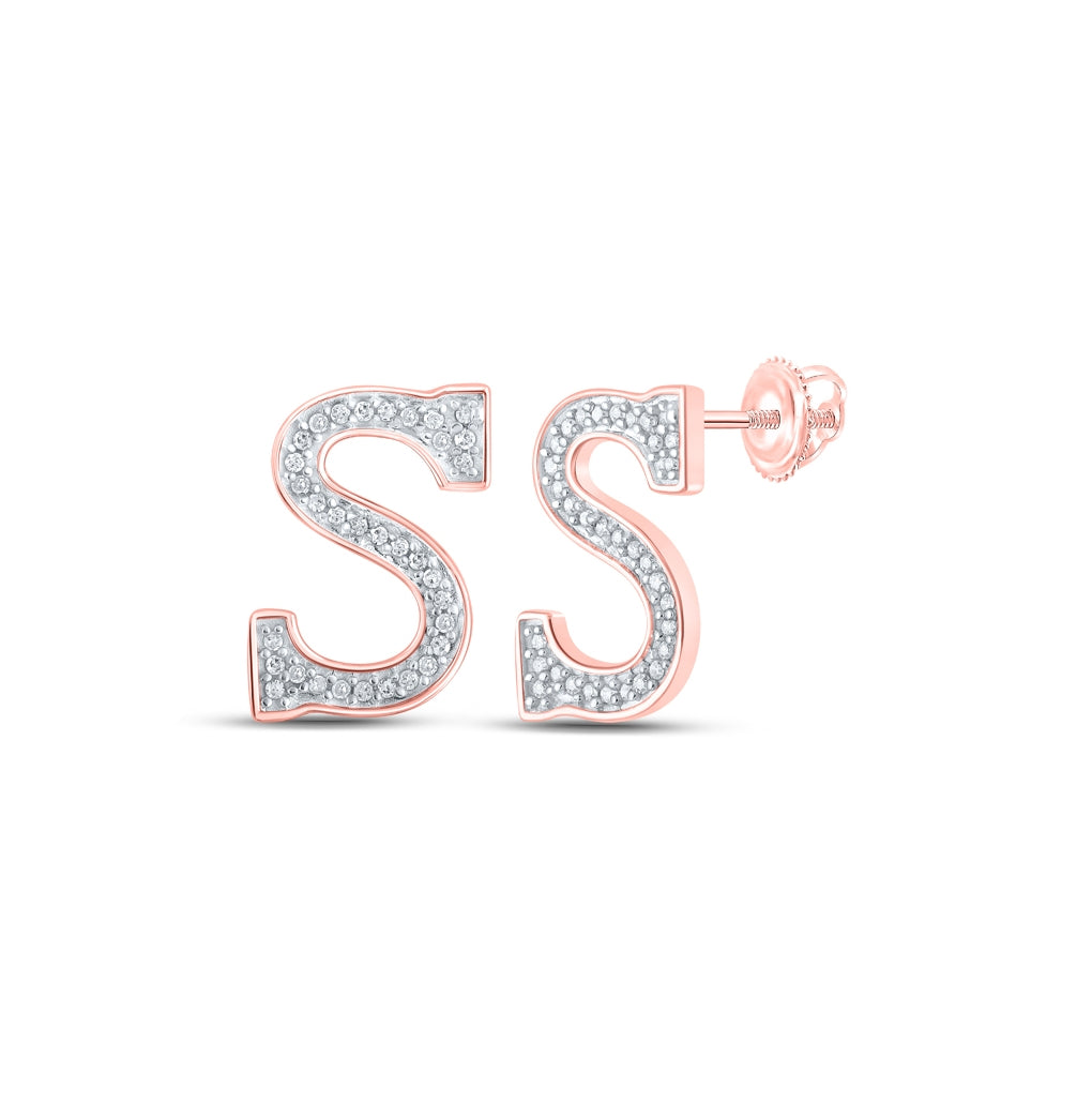 10K Rose Gold Womens Round Diamond S Initial Cluster Earrings 1/8 Cttw