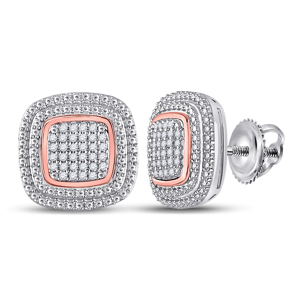 10K Rose Gold Womens Round Diamond Square Cluster Earrings 1/6 Cttw, Length: 0.51 In, Width: 0.51 In