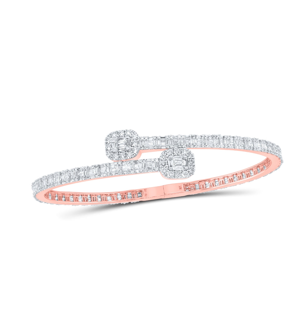 10K Rose Gold Womens Round Diamond Square Cuff Bangle Bracelet 3 Cttw