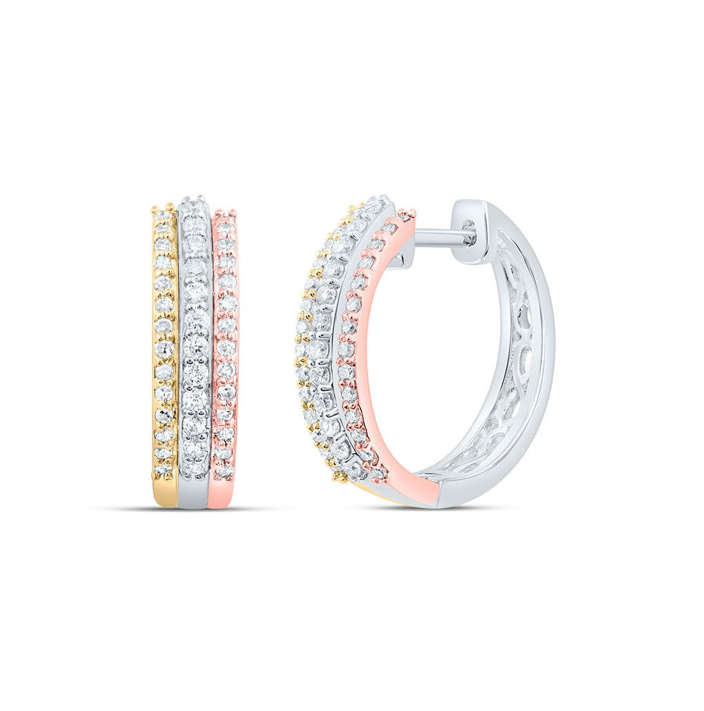 10K Tri-Tone Gold Womens Round Diamond Hoop Earrings 1/4 Cttw
