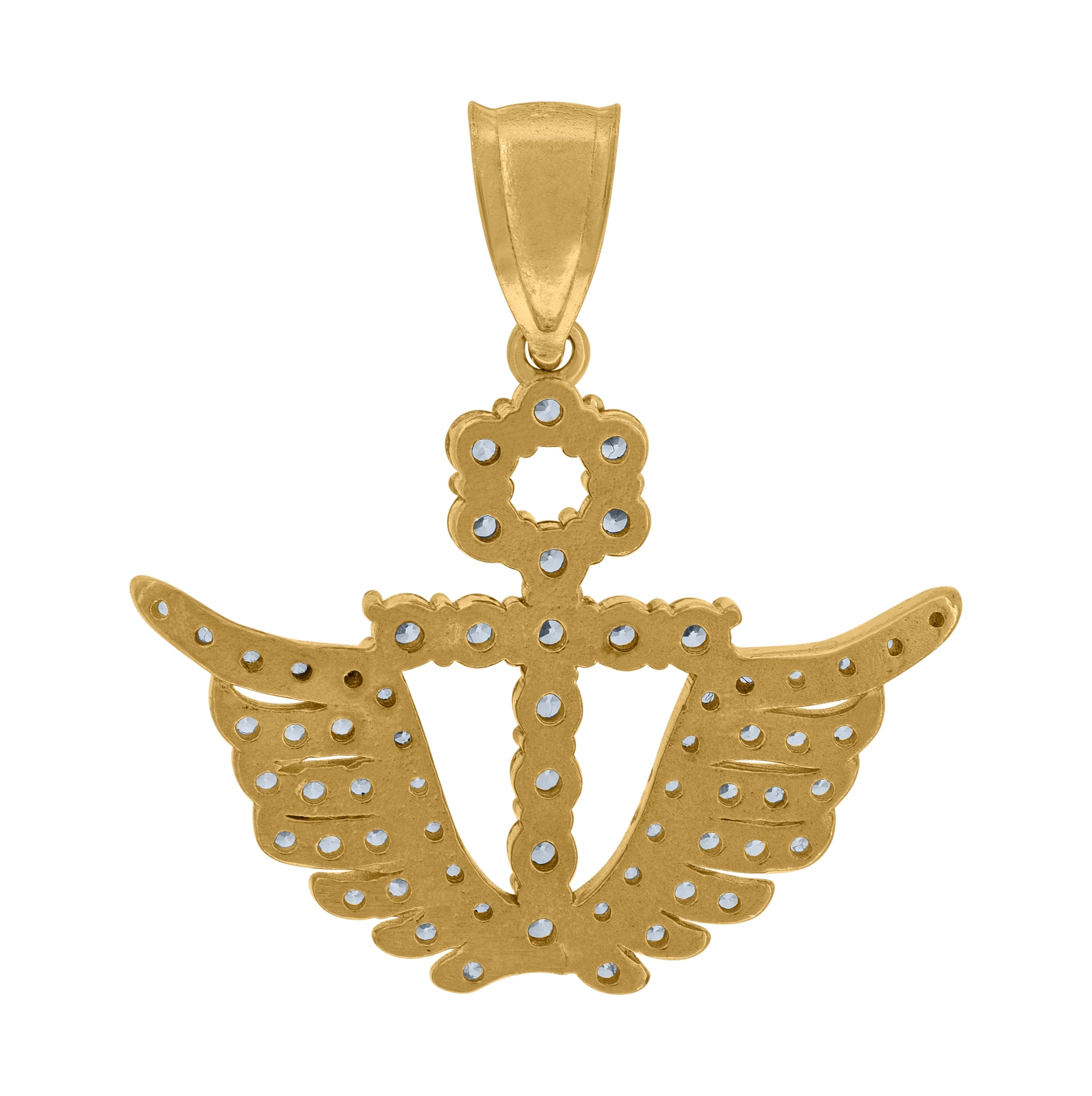 10K Two-Tone Gold Cubic Zirconia Angel Wings Ankh Religious Charm Pendant