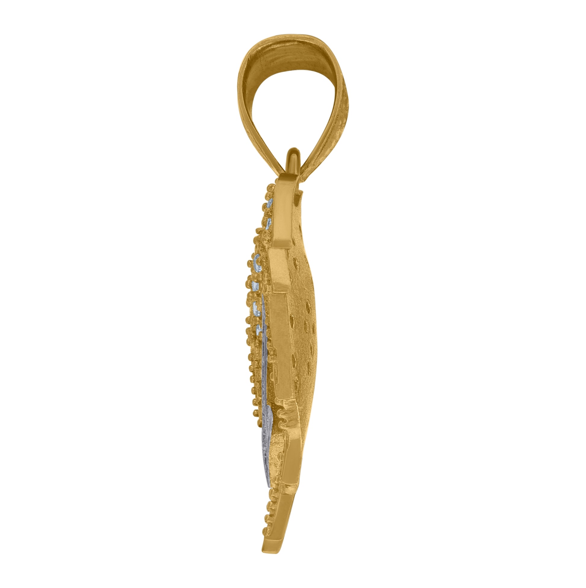 10K Two-Tone Gold Cubic Zirconia Angel Wings Cross Religious Charm Pendant