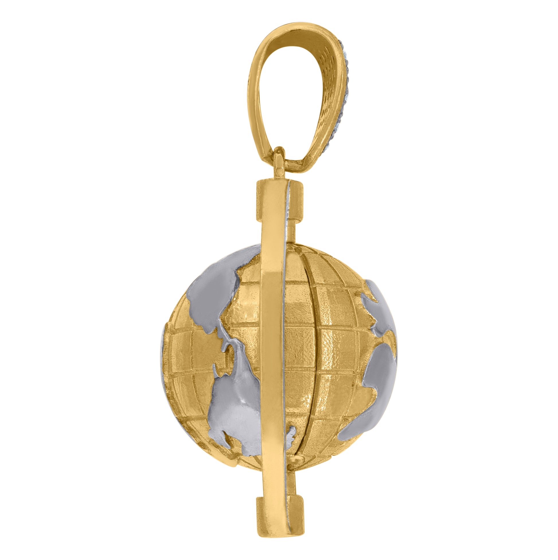 10K Two-Tone Gold Cubic Zirconia Earth Globe Map Charm Pendant