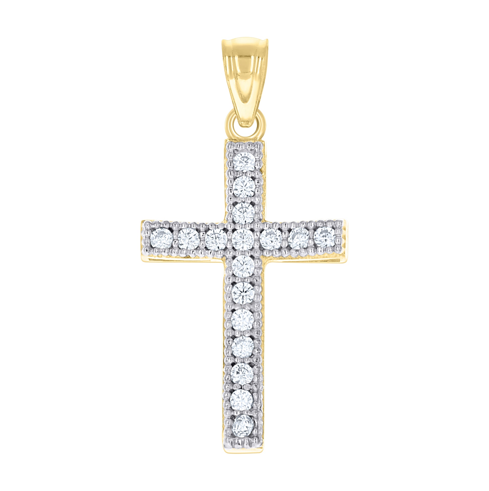 10K Two-Tone Gold Cubic-Zirconia Unisex Cross Religious Charm Pendant