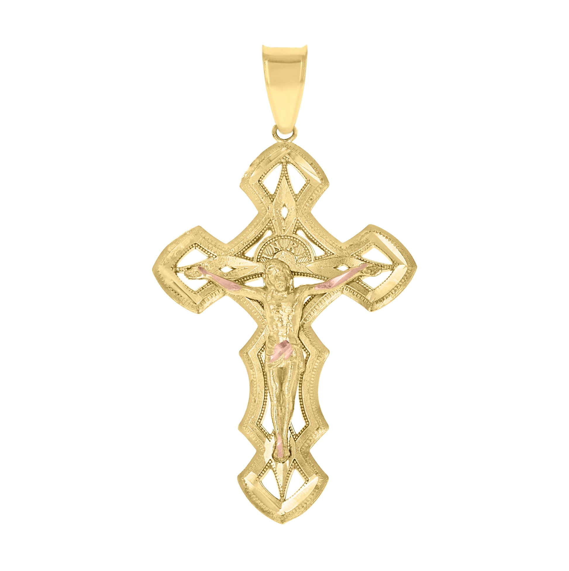 10K Two-tone Gold Mens Crucifix Cross Religious Charm Pendant