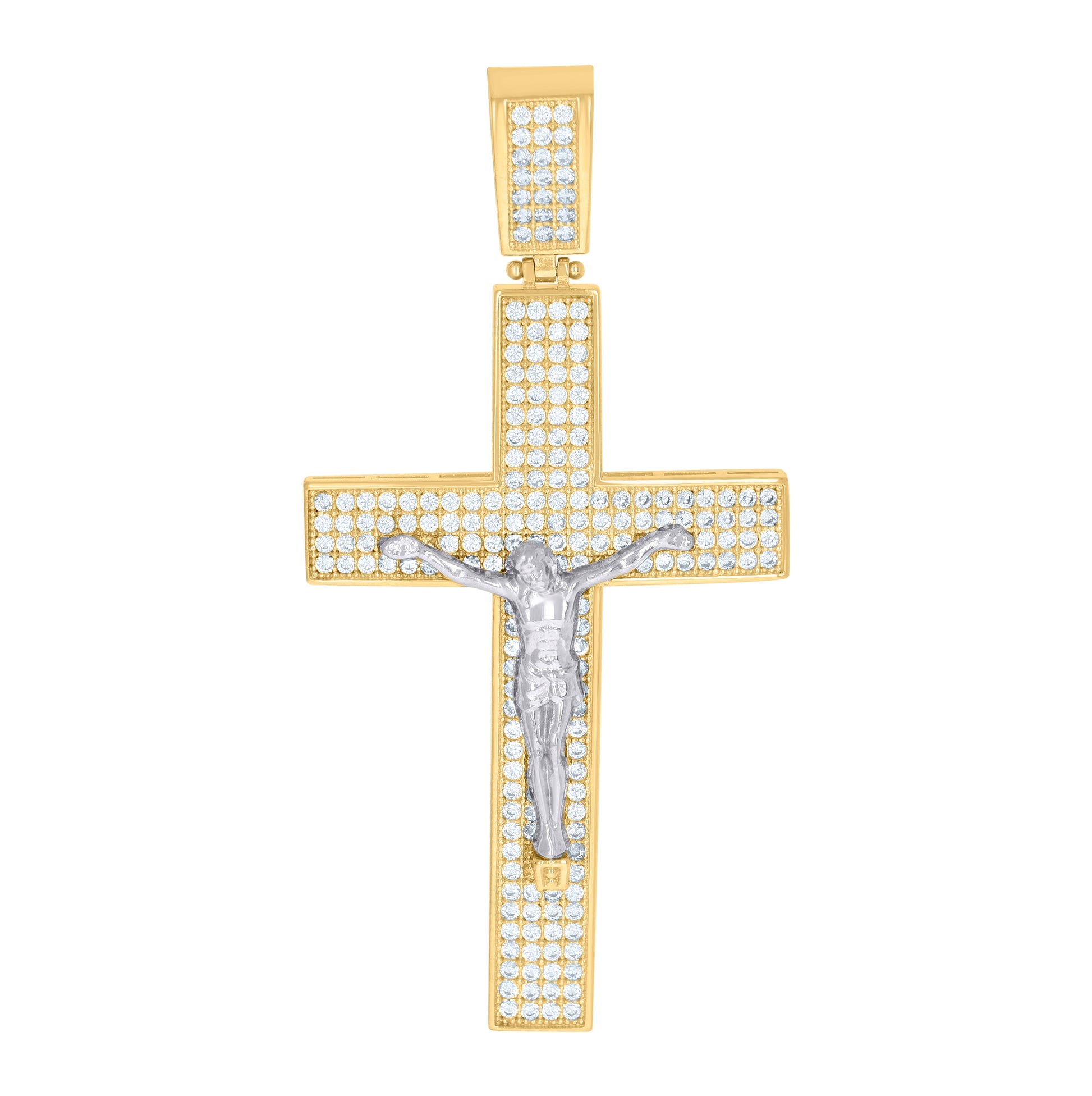 10K Two-Tone Gold Mens Cubic-Zirconia Cross Crucifix Religious Charm Pendant