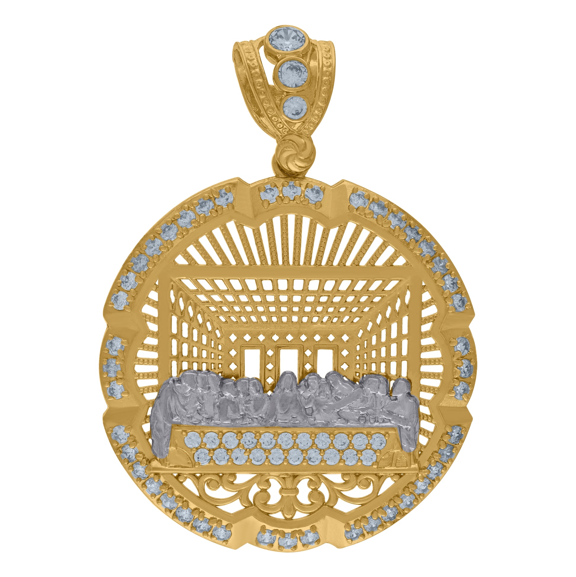 10K Two-Tone Gold Mens Cubic Zirconia Last Supper Medallion Religious Charm Pendant