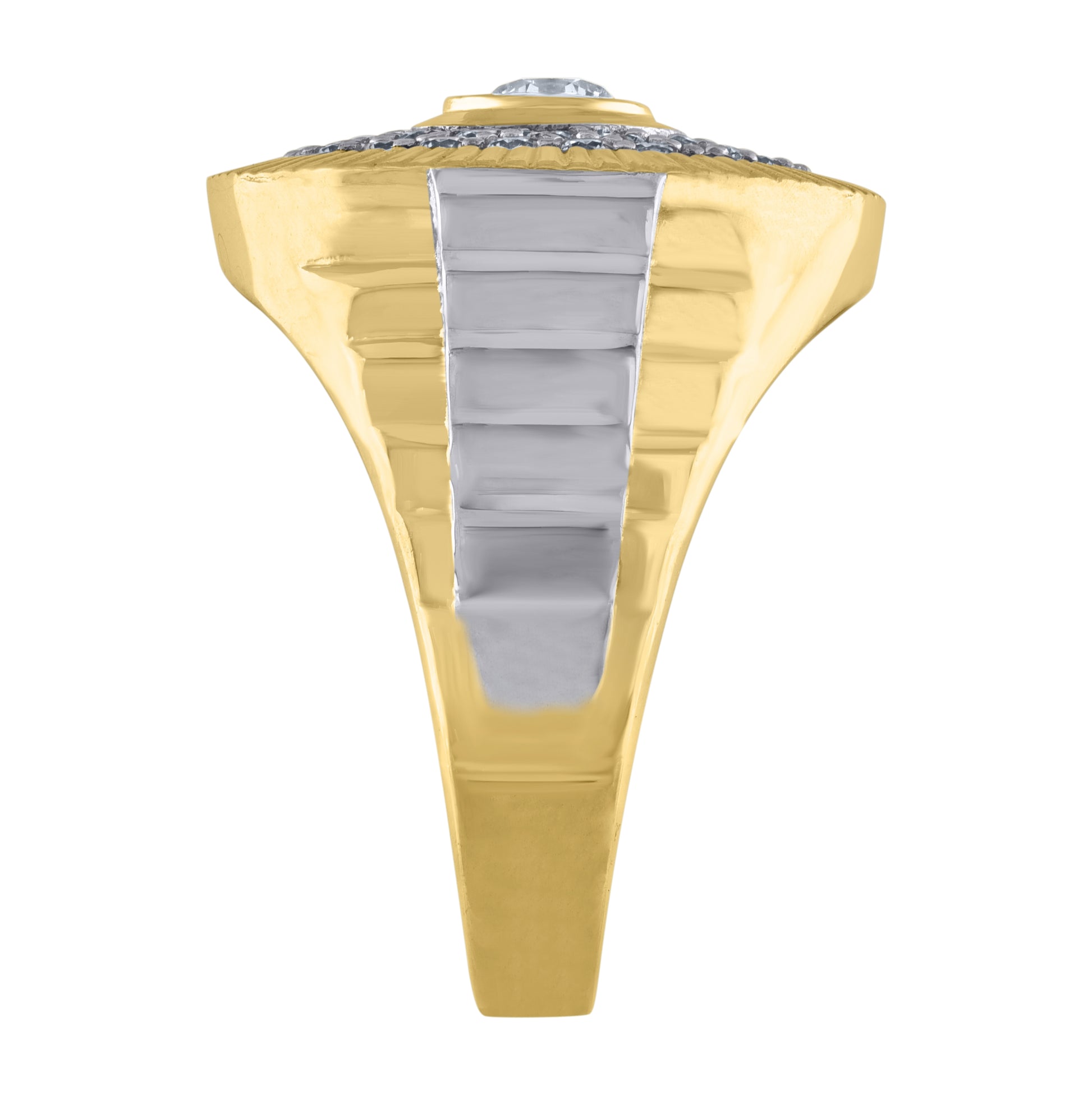 10K Two-Tone Gold Mens Cubic Zirconia Round Head Fashion Ring