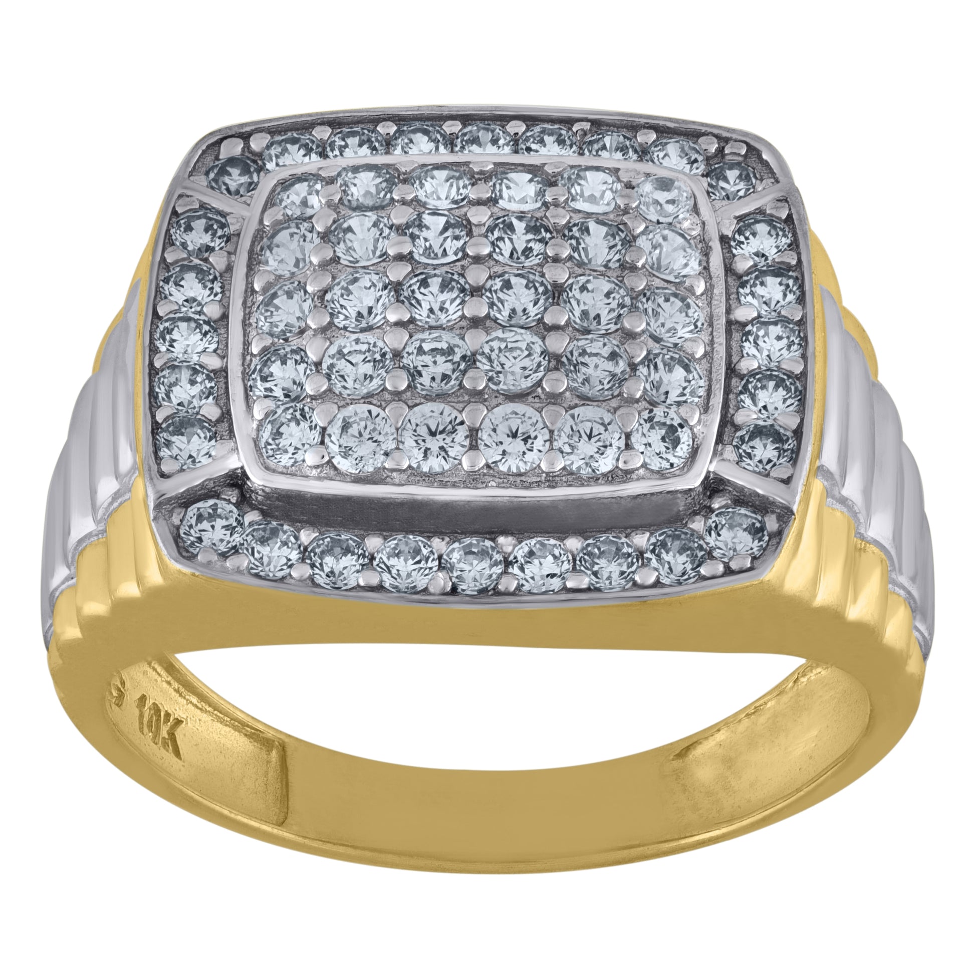 10K Two-Tone Gold Mens Cubic Zirconia Square Head Fashion Ring