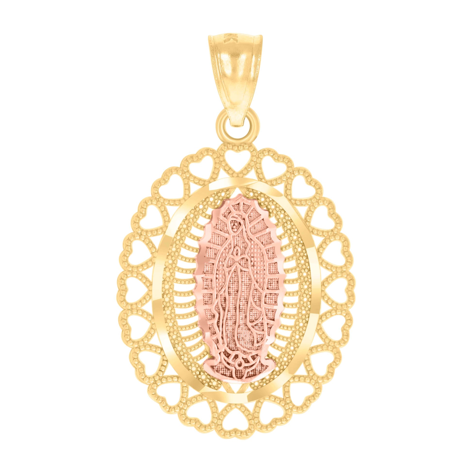 10K Two-Tone Gold Mens Diamond-Cut Lady Of Guadalupe Religious Charm Pendant