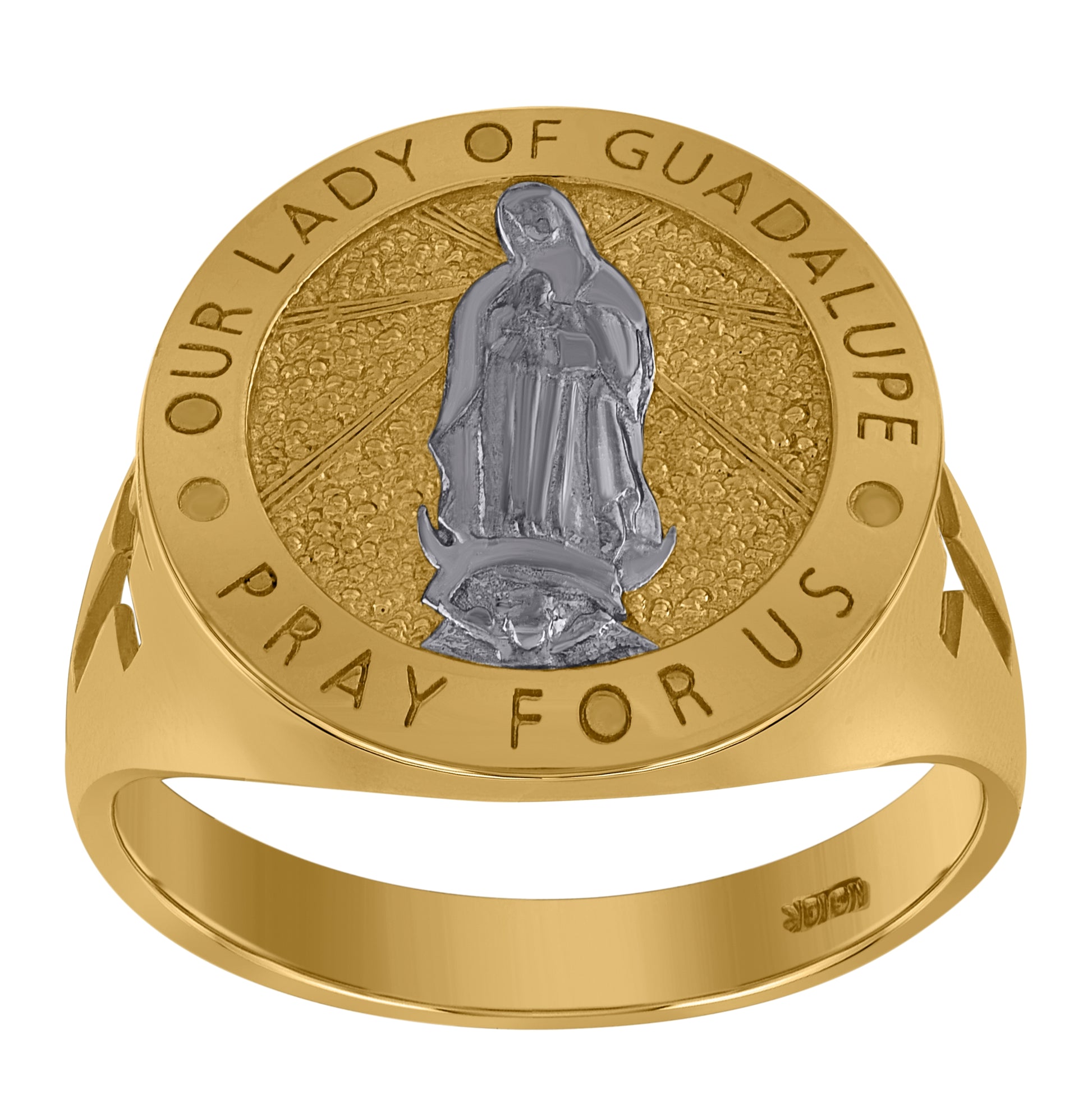 10K Two-Tone Gold Mens Guadalupe Our Lady Of Guadalupe Pray For Us Religious Ring