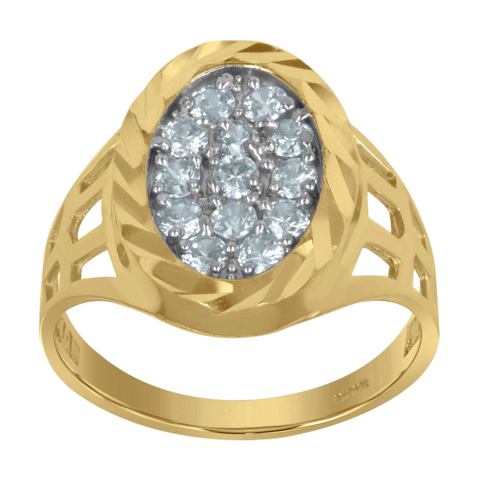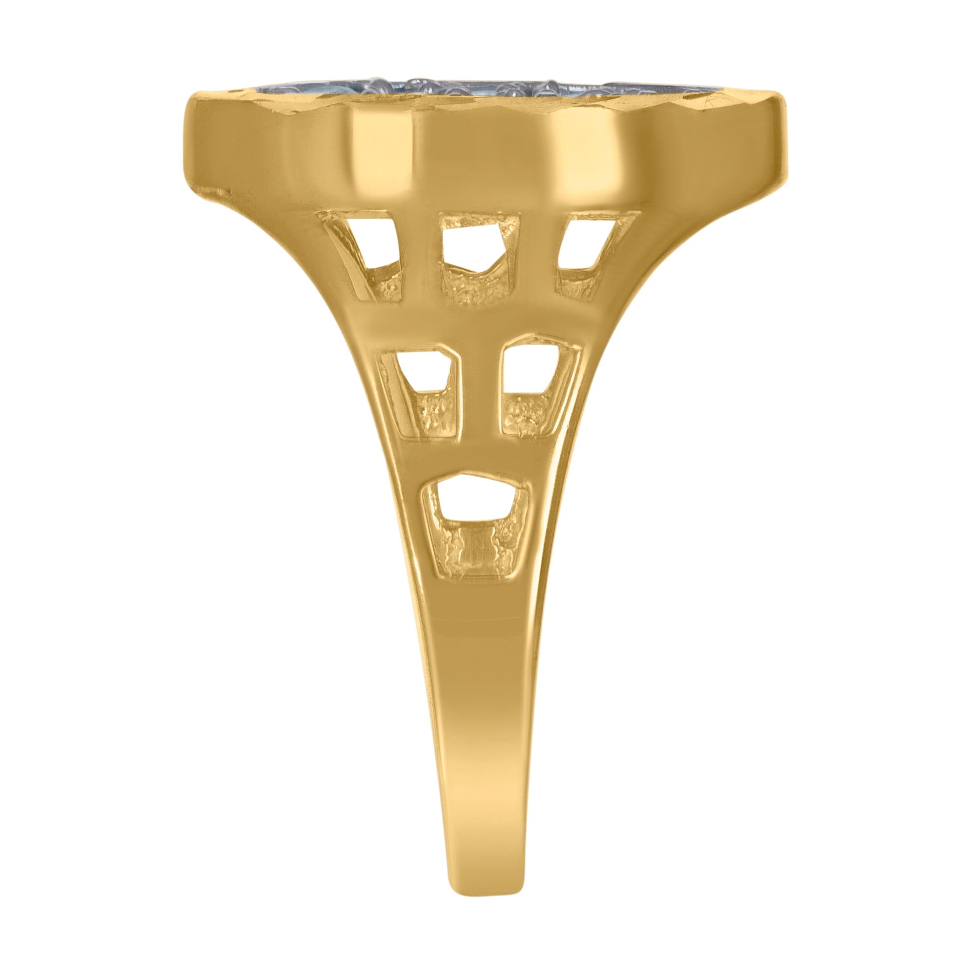 10K Two-Tone Gold Mens Round Cubic Zirconia Diamond Cut Oval Engagement Ring