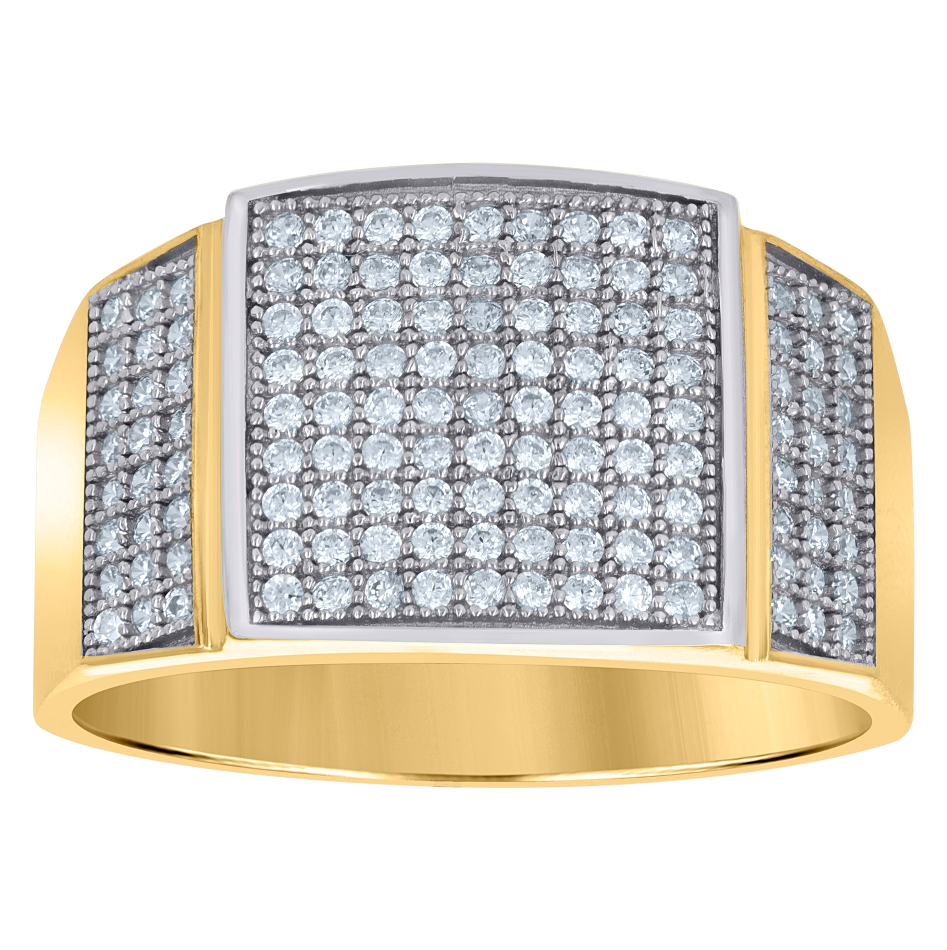 10K Two-Tone Gold Mens Round Cubic Zirconia Square Engagement Ring