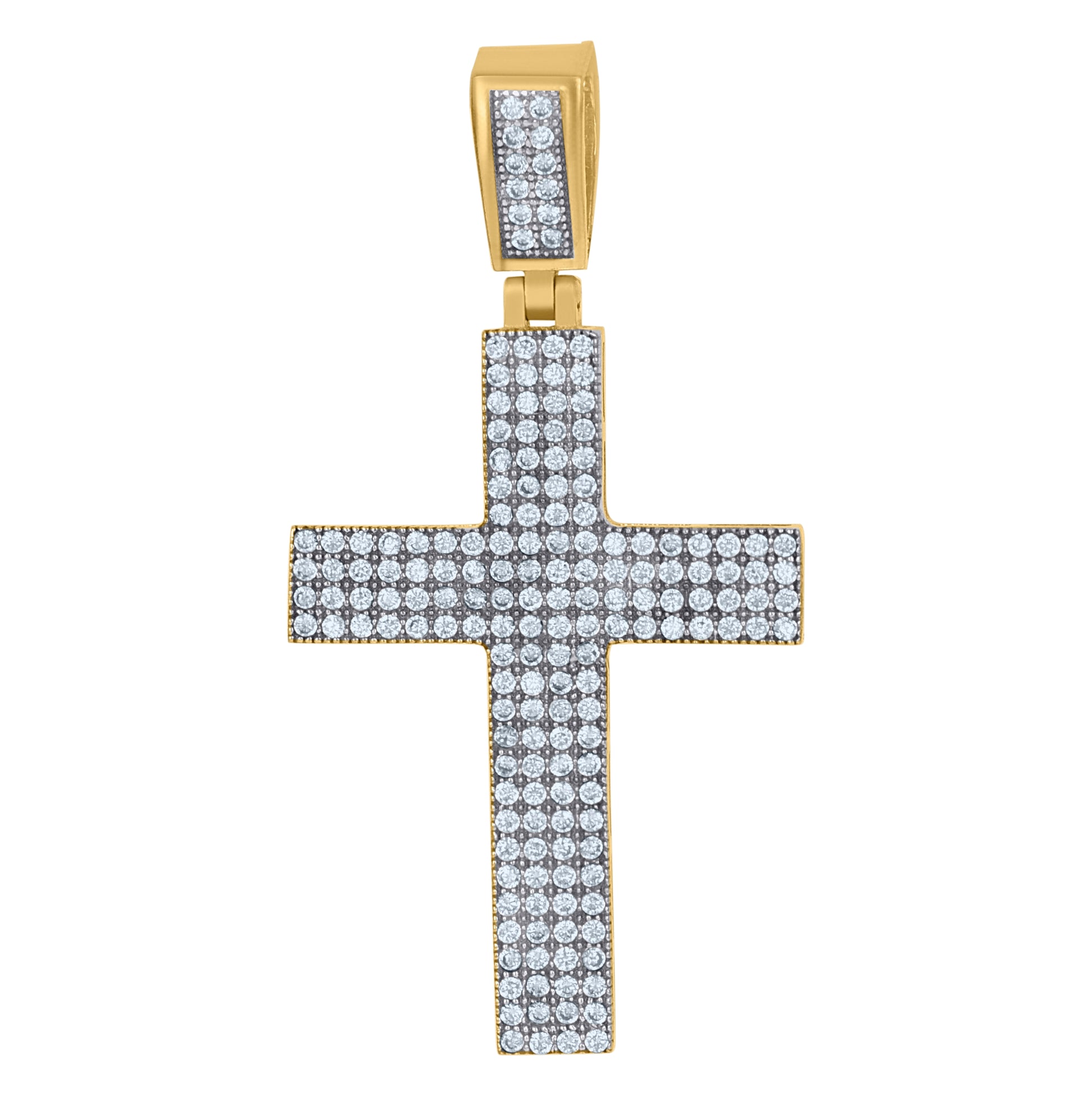 10K Two-Tone Gold Mens Women Cubic Zirconia Crucifix Cross Religious Charm Pendant