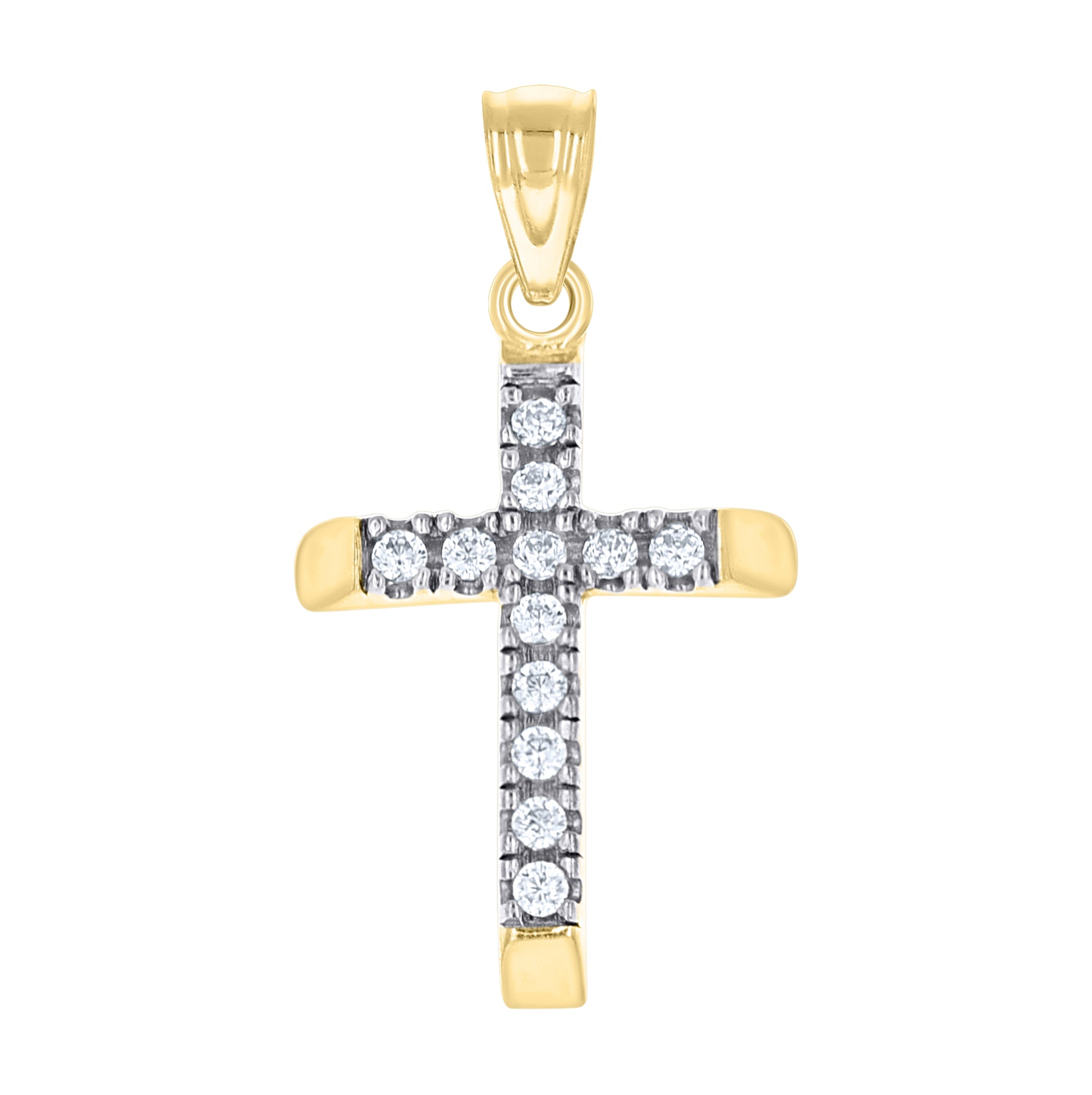 10K Two-Tone Gold Mens Women Cubic Zirconia Cubic-Zirconia Cross Religious Charm Pendant