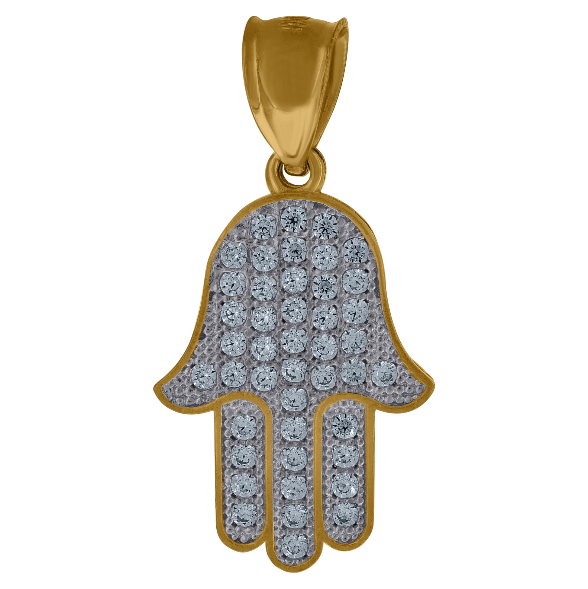 10K Two-Tone Gold Mens Women Cubic Zirconia Cubic-Zirconia Hamsa Religious Charm Pendant