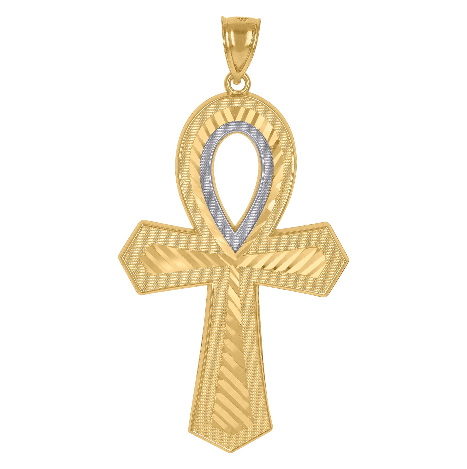 10K Two-Tone Gold Mens Women Diamond-Cut Ankh Cross Religious Charm Pendant