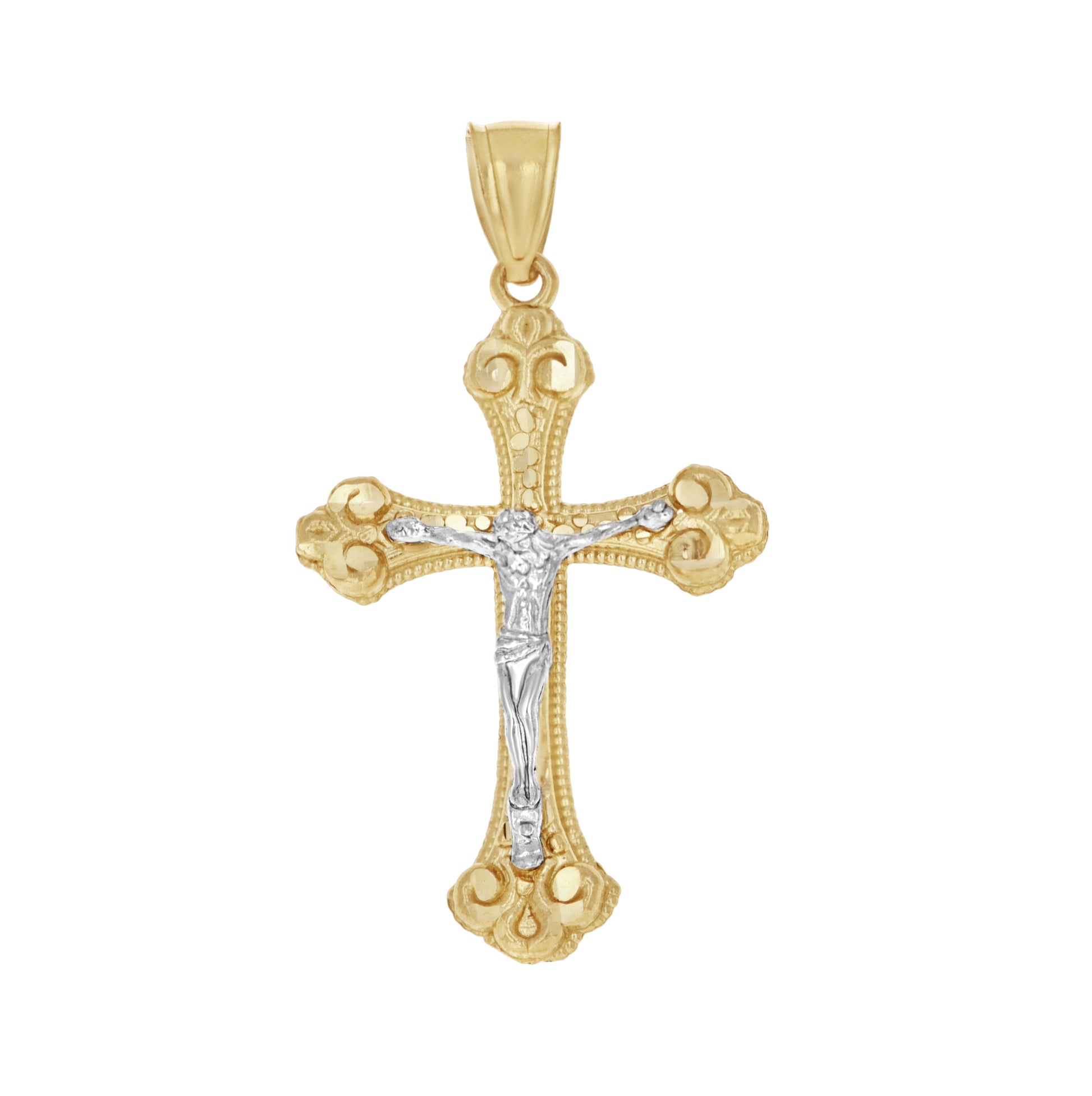 10K Two-Tone Gold Mens Women Nugget Textured Crucifix Cross Religious Charm Pendant
