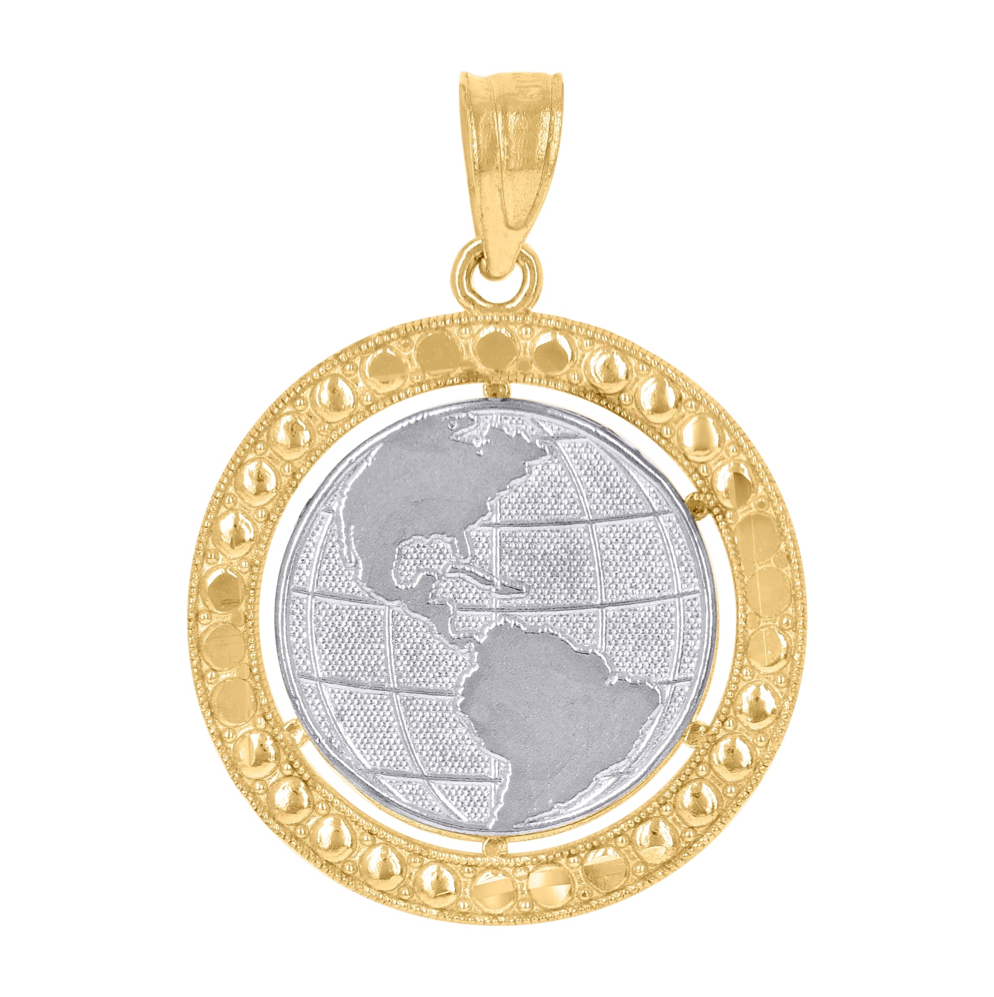 10K Two-Tone Gold Mens Women Textured Globe Charm Pendant