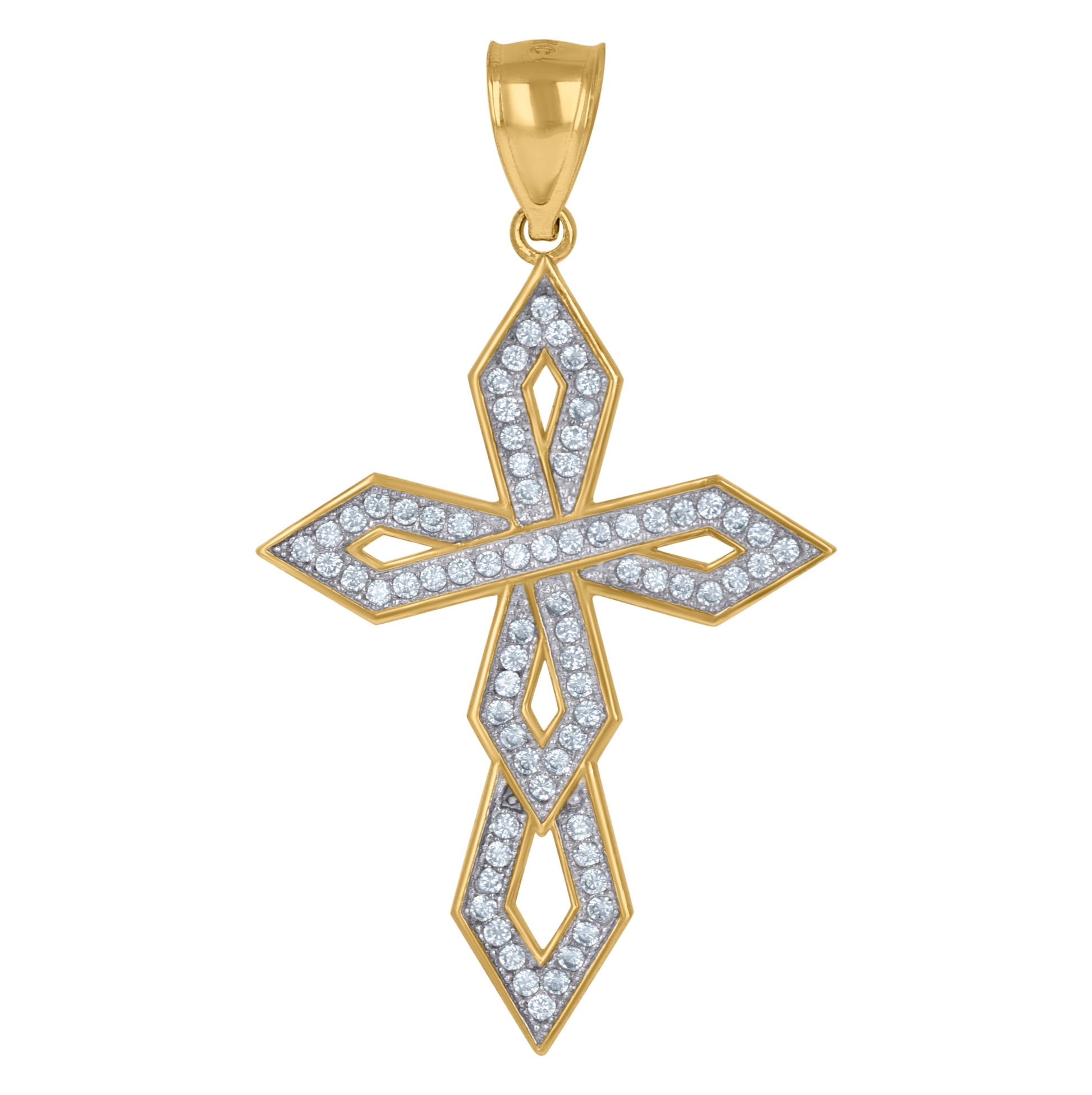 10K Two-Tone Gold Unisex Cubic Zirconia Cross Religious Charm Pendant