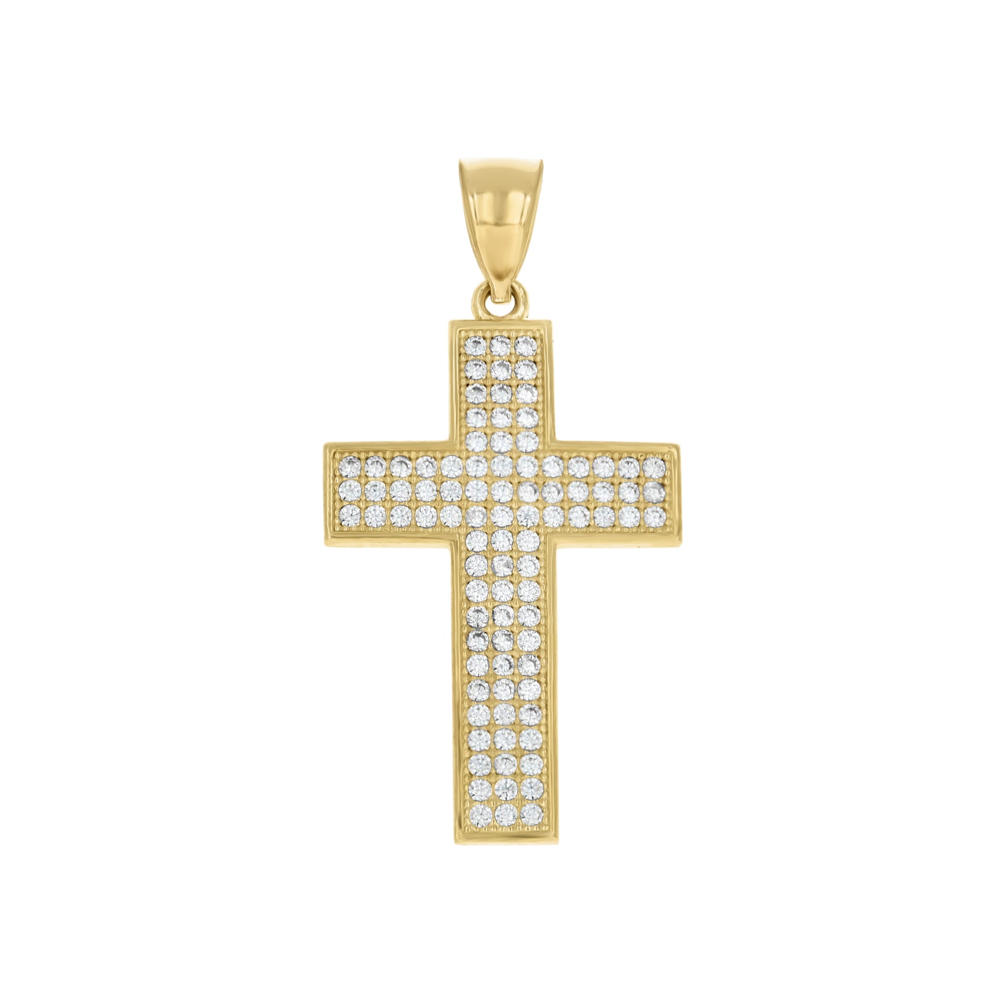 10K Two-Tone Gold Unisex Cubic Zirconia Cubic-Zirconia Cross Religious Charm Pendant