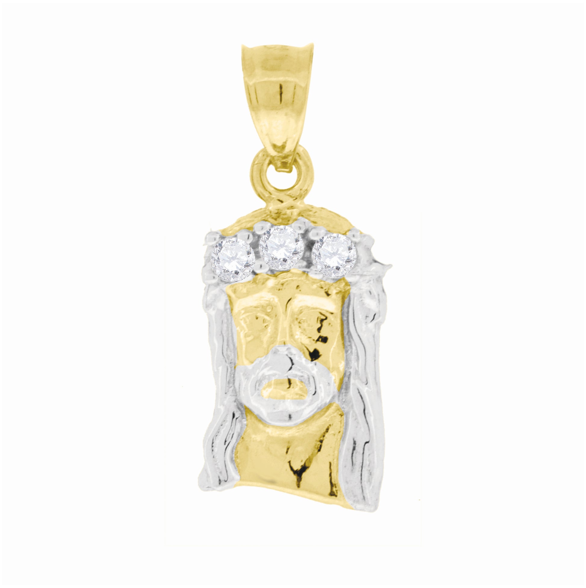 10K Two-Tone Gold Unisex Cubic Zirconia Cubic-Zirconia Jesus Face Religious Charm Pendant