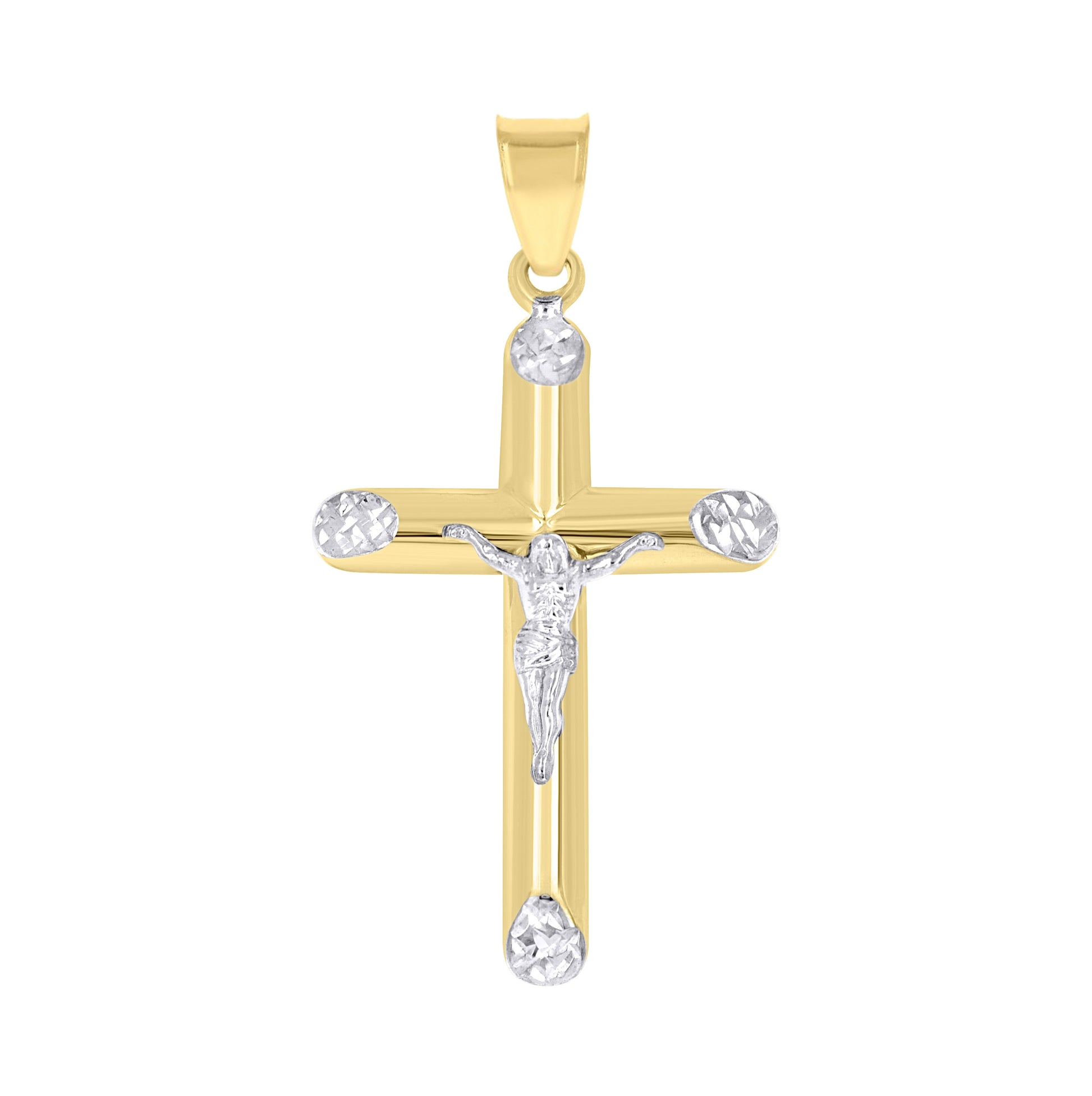 10K Two-Tone Gold Unisex Inri Crucifix Cross Religious Charm Pendant