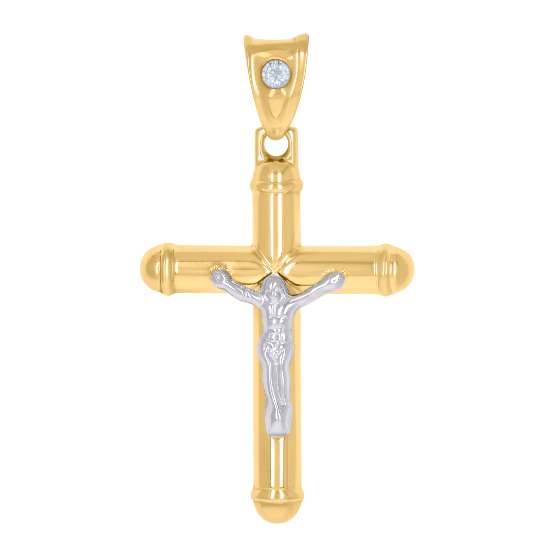 10K Two-Tone Gold Unisex Inri Crucifix Cross Religious Charm Pendant