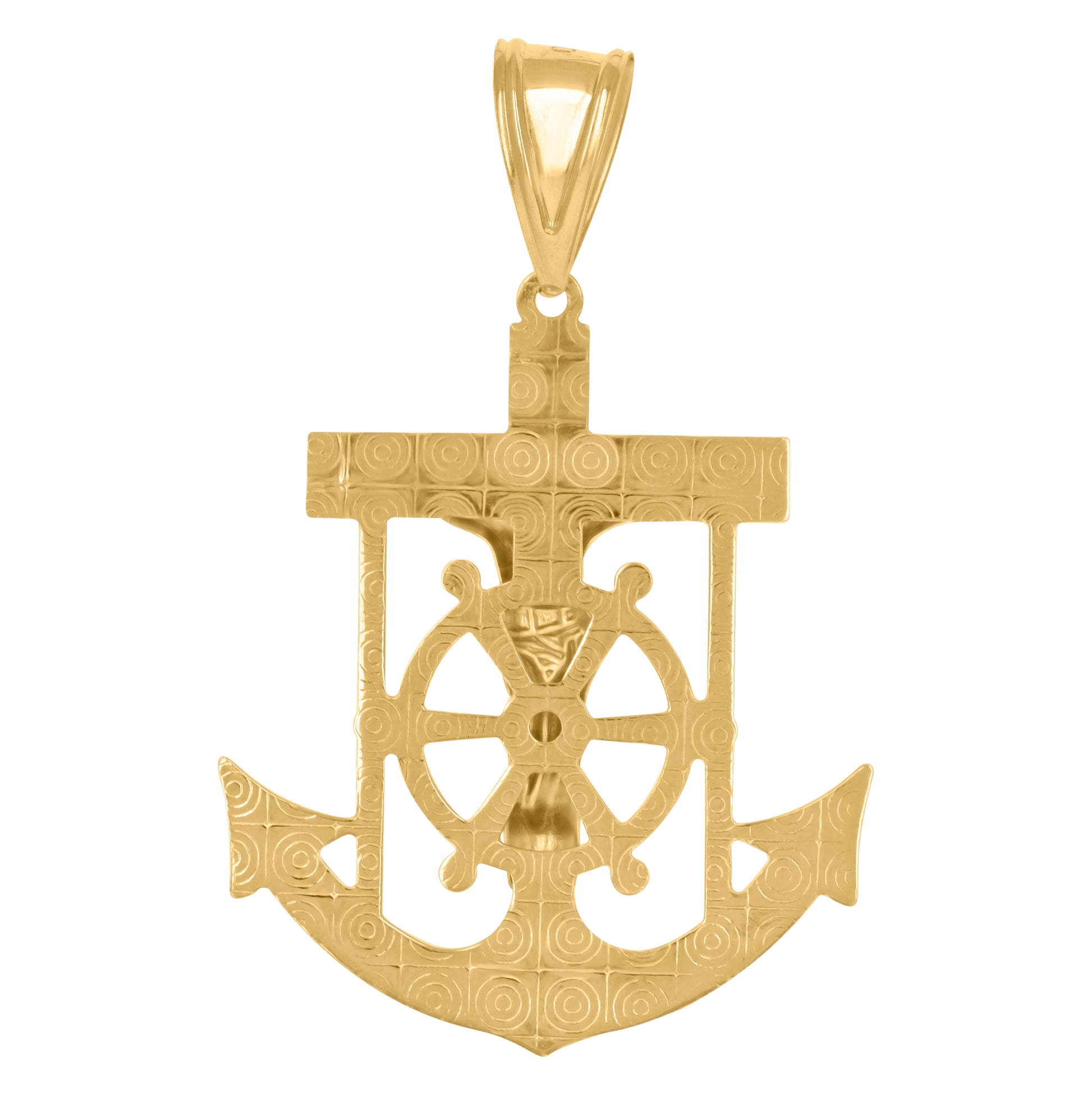 10K Two-Tone Gold Unisex Polish Finish Crucifix Anchor Religious Charm Pendant
