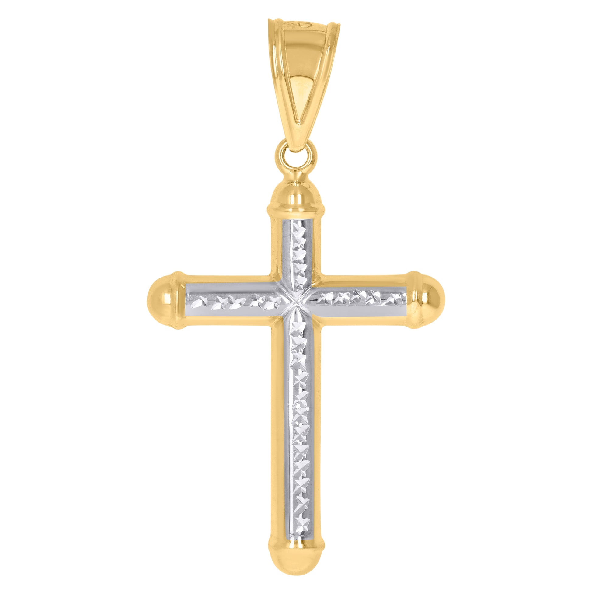 10K Two-Tone Gold Unisex Textured Cross Religious Charm Pendant