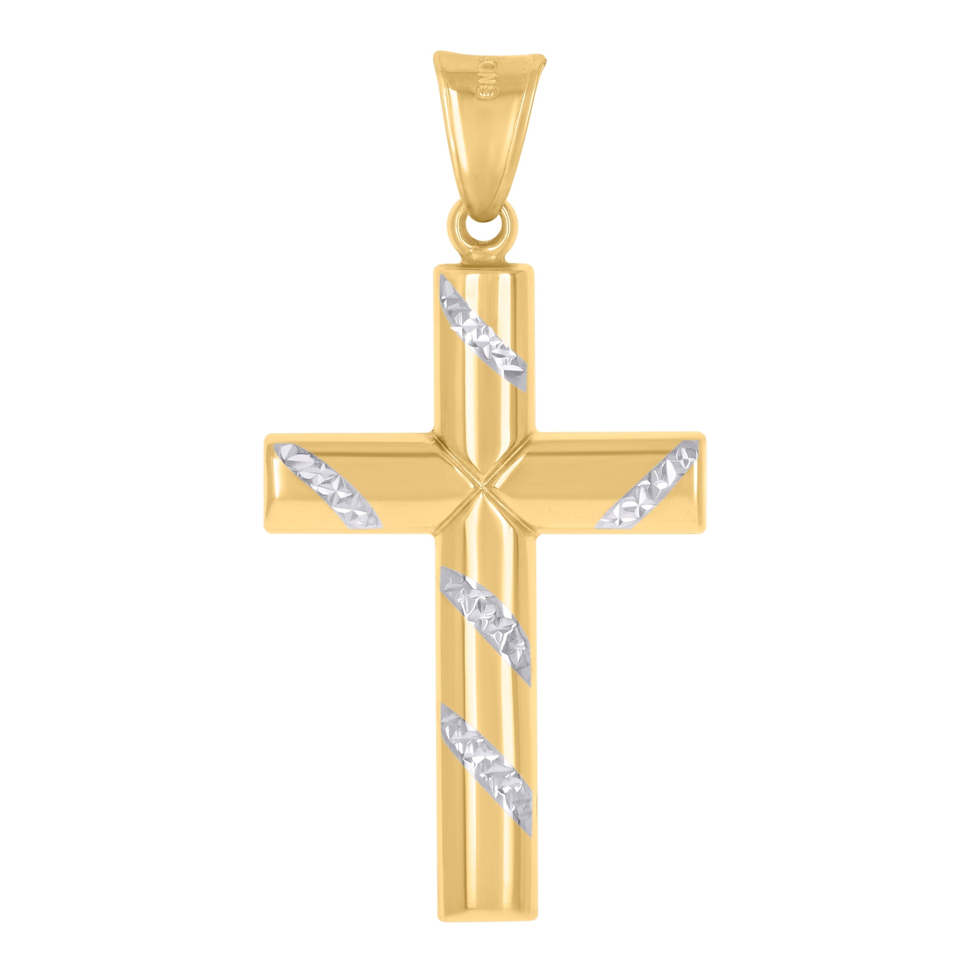 10K Two-Tone Gold Unisex Textured Cross Religious Charm Pendant