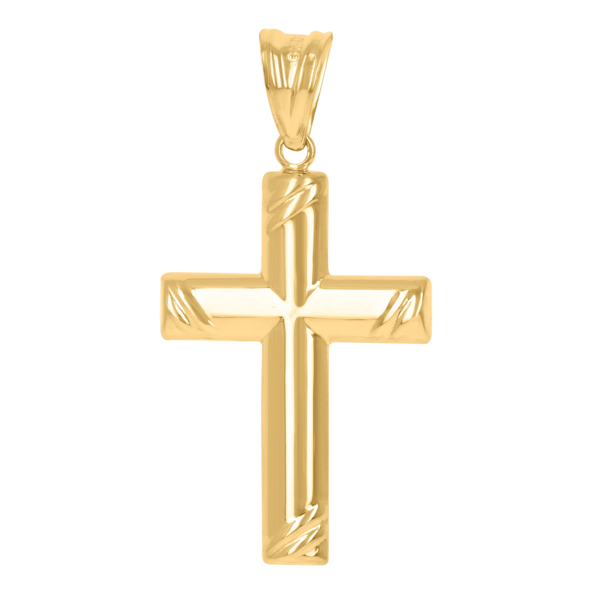 10K Two-Tone Gold Unisex Textured Cross Religious Charm Pendant