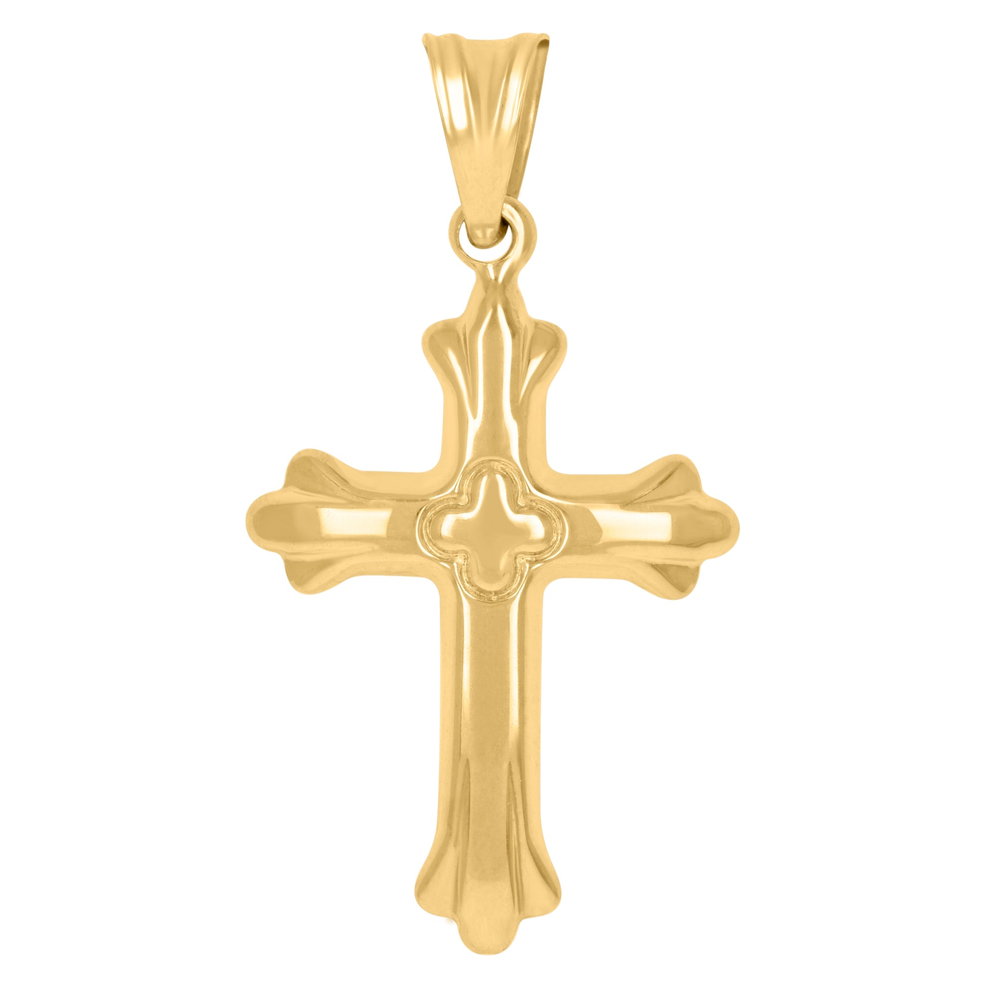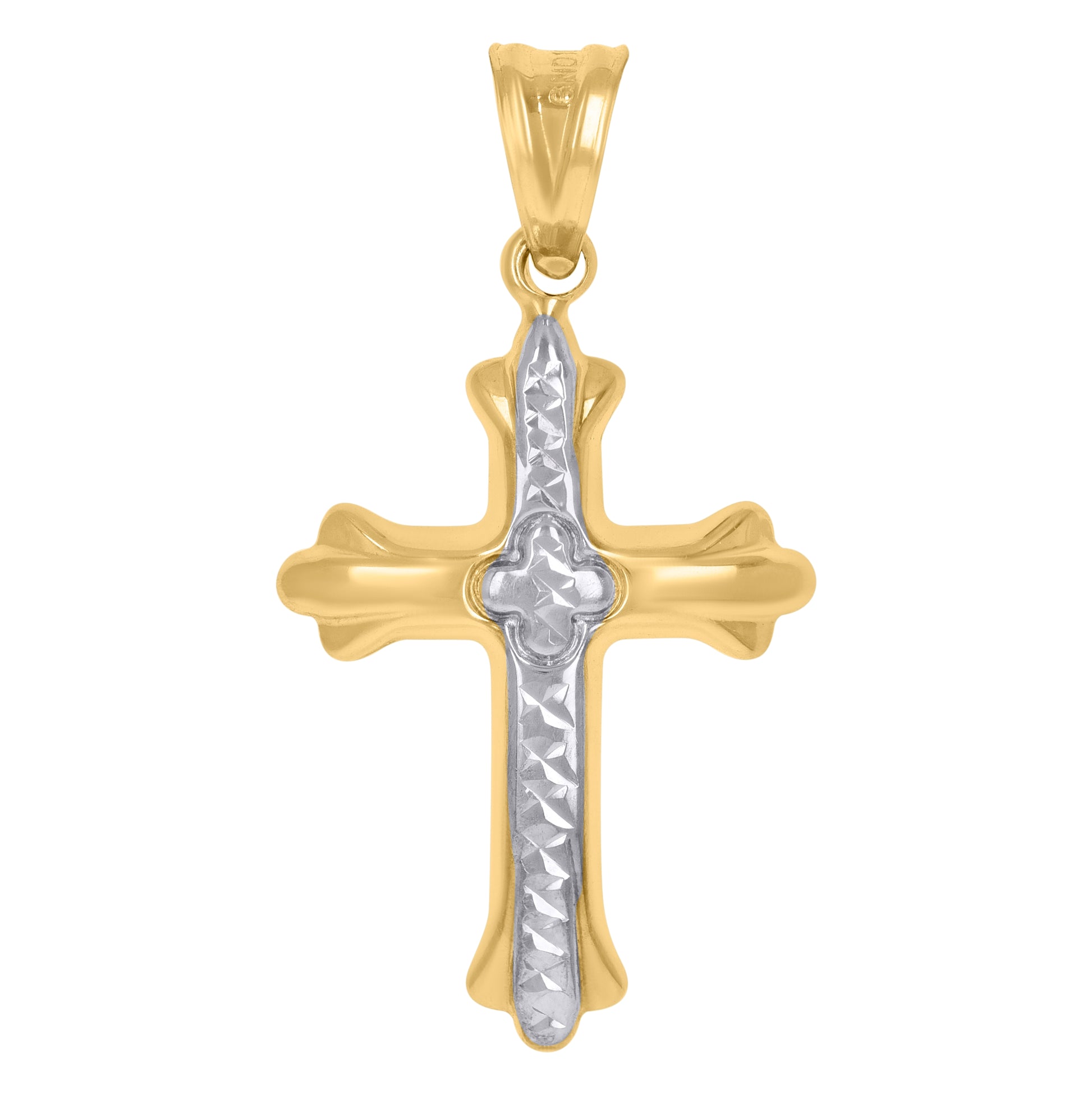 10K Two-Tone Gold Unisex Textured Cross Religious Charm Pendant