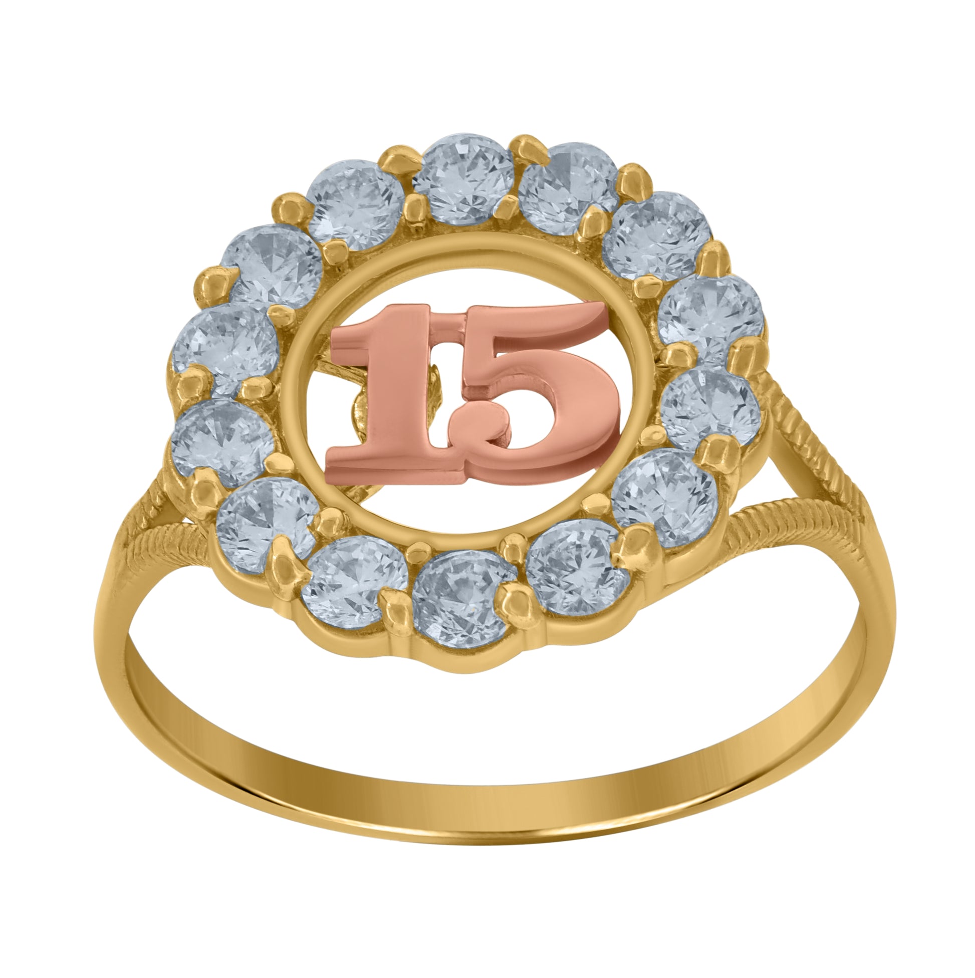 10K Two-Tone Gold Womens Cubic Zirconia 15 Anos Engagement Ring