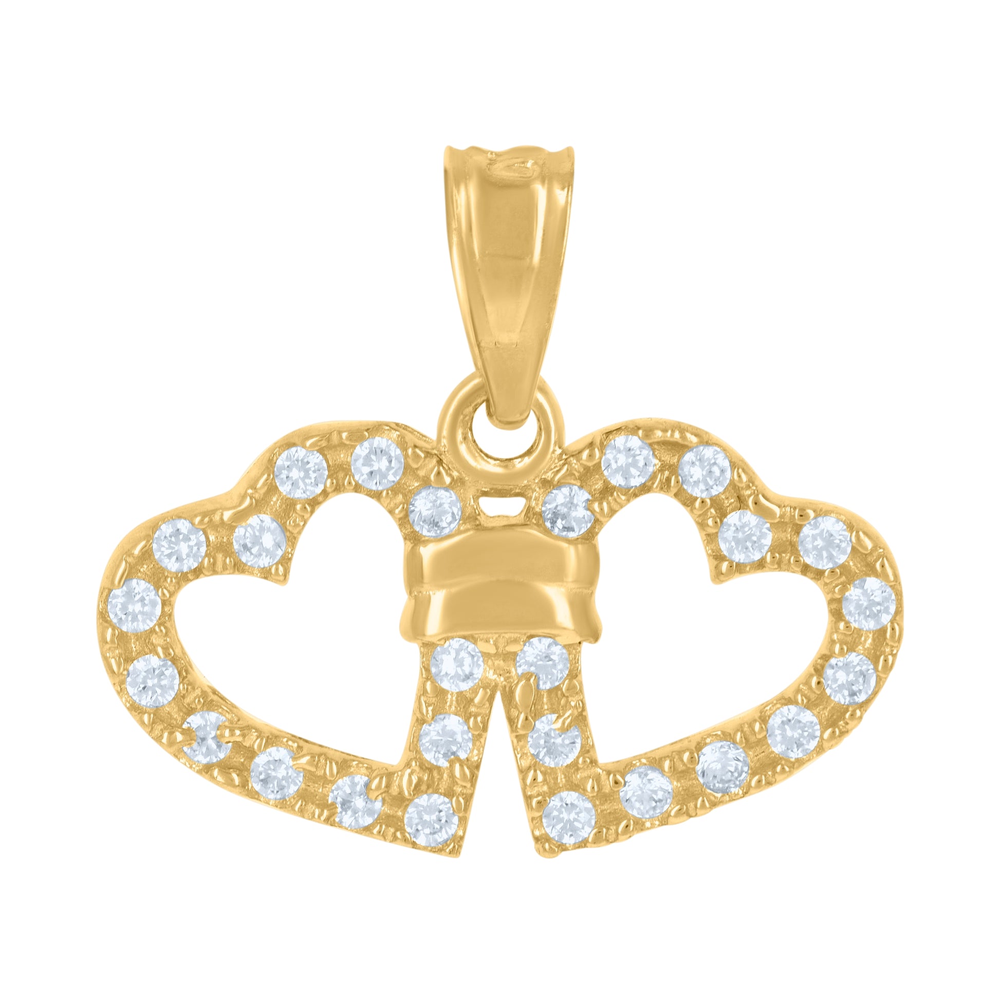 10K Two-Tone Gold Womens Cubic Zirconia Cubic-Zirconia Double Heart Charm Pendant