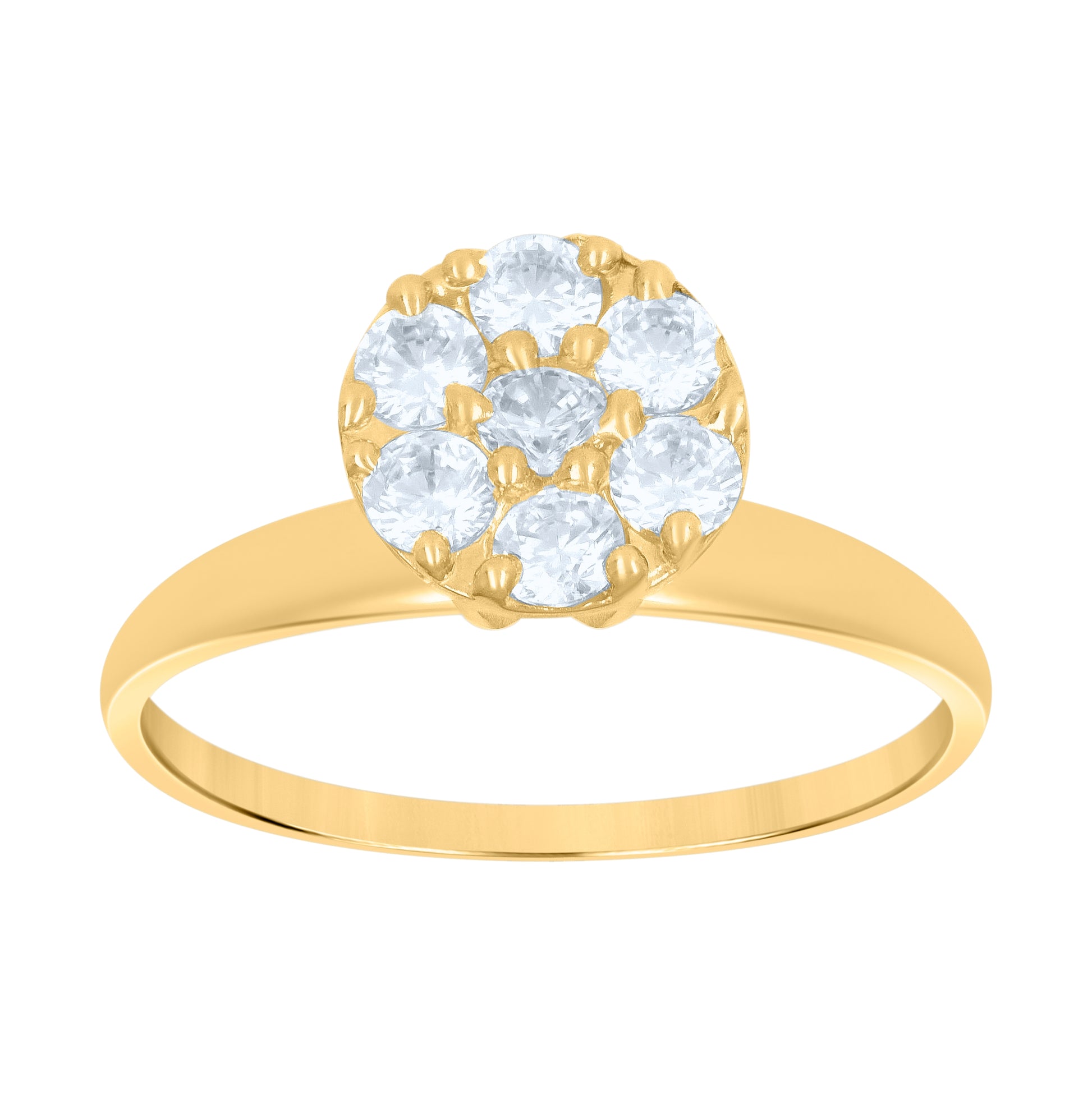 10K Two-Tone Gold Womens Cubic Zirconia Floral Engagement Ring