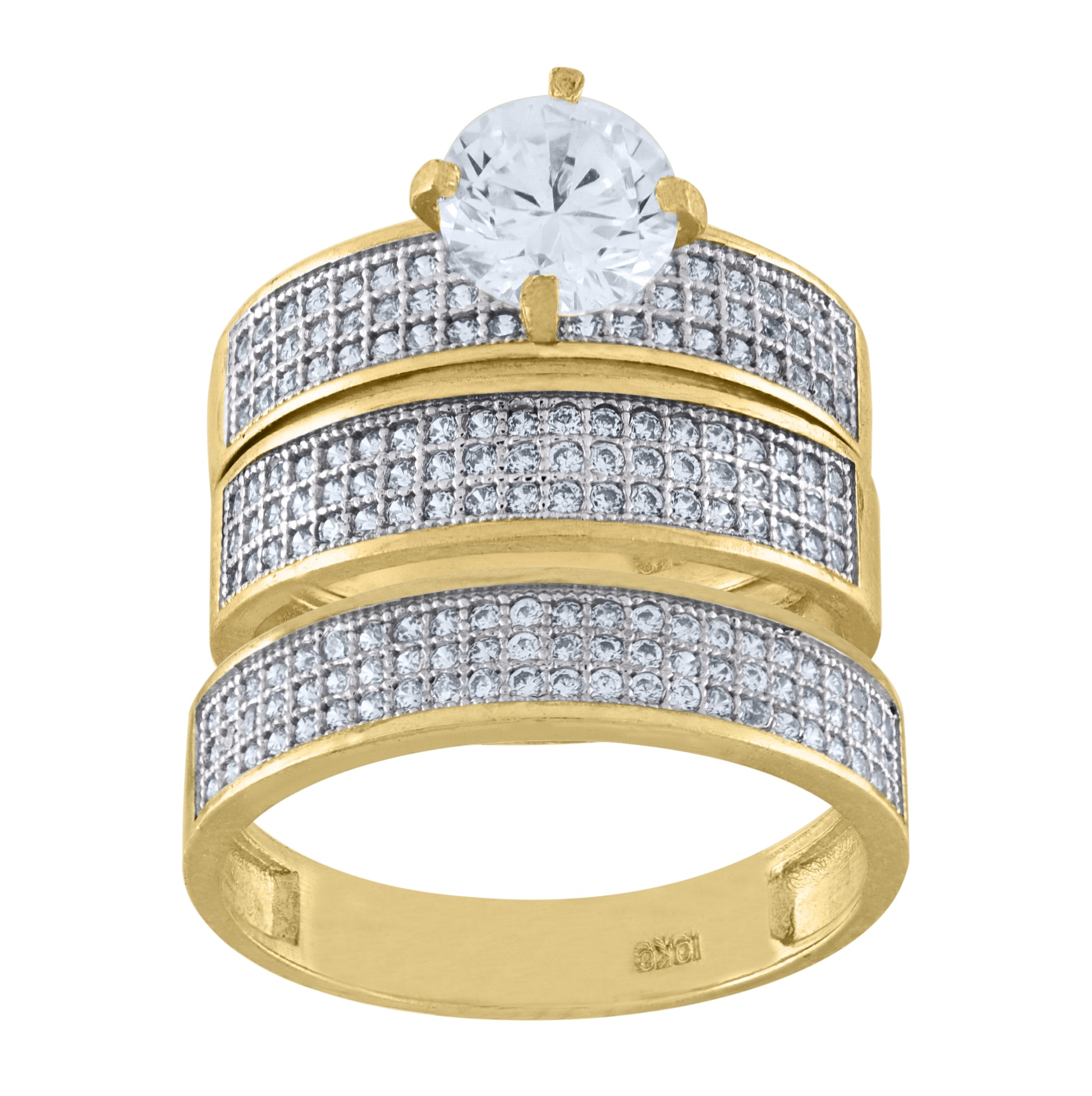 10K Two-Tone Gold Womens Cubic Zirconia Trio Ring Set