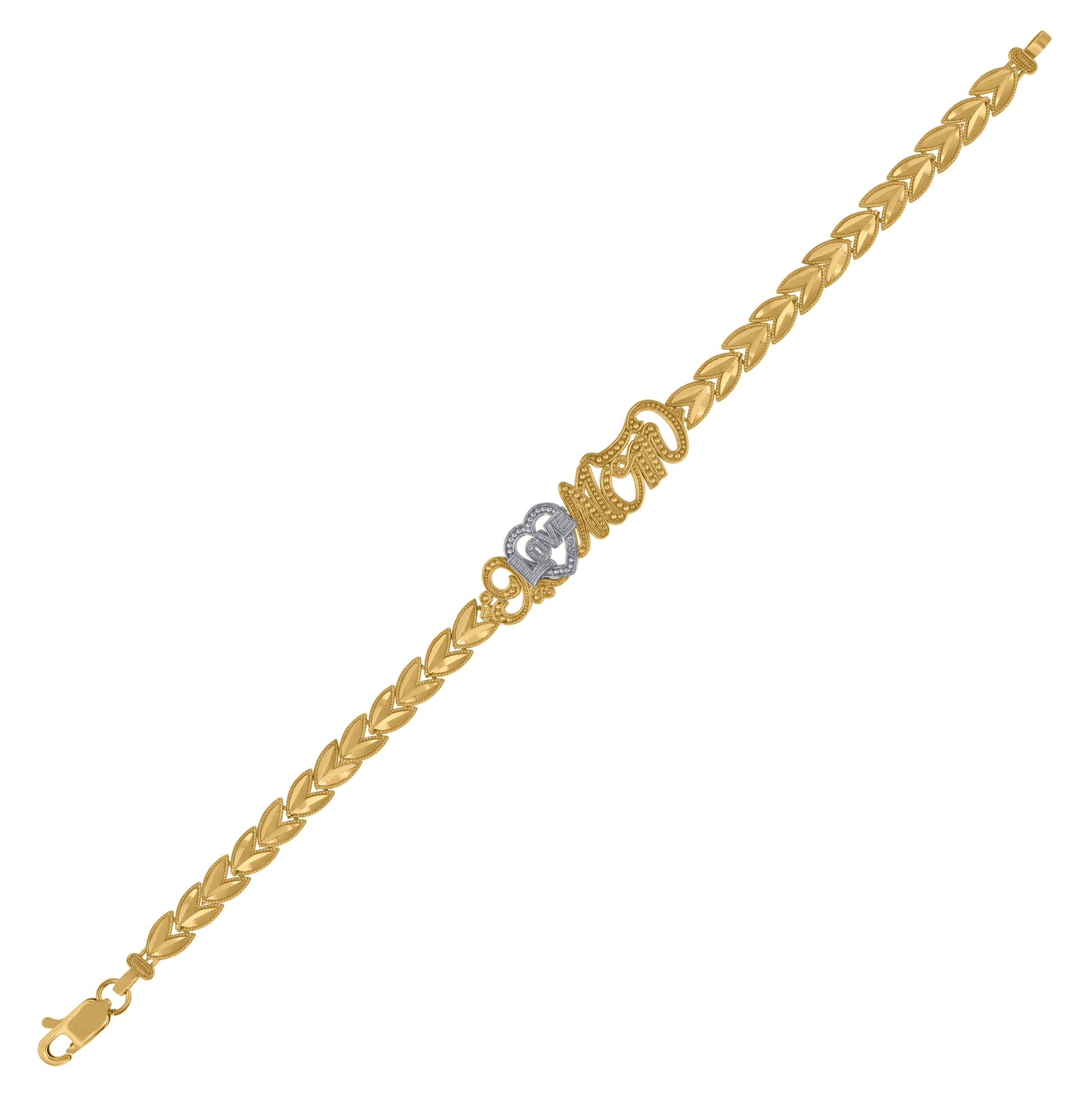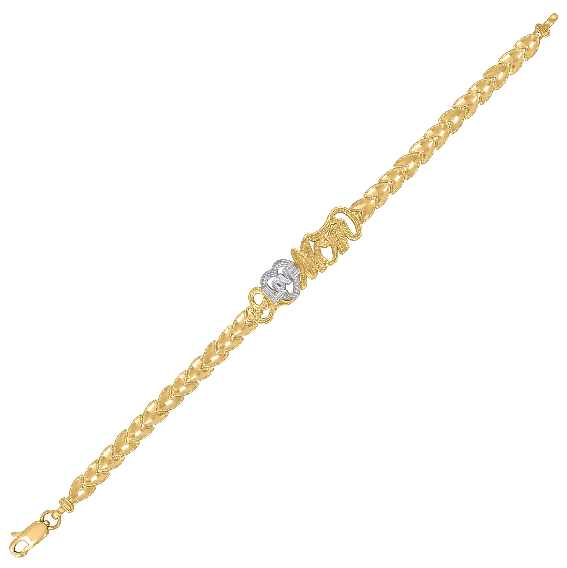 10K Two-Tone Gold Womens I Love Mom Link Bracelet Size 7 Inches